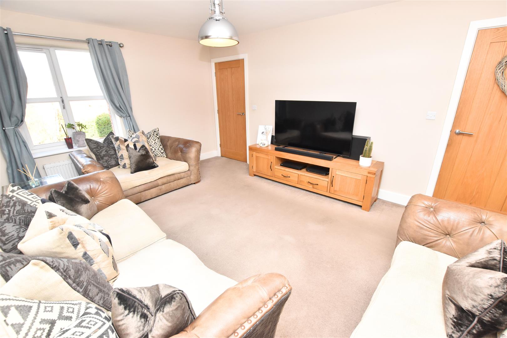 The lounge has a uPVC double glazed window to the front aspect, carpeted flooring, radiator and large built in understairs storage cupboard.