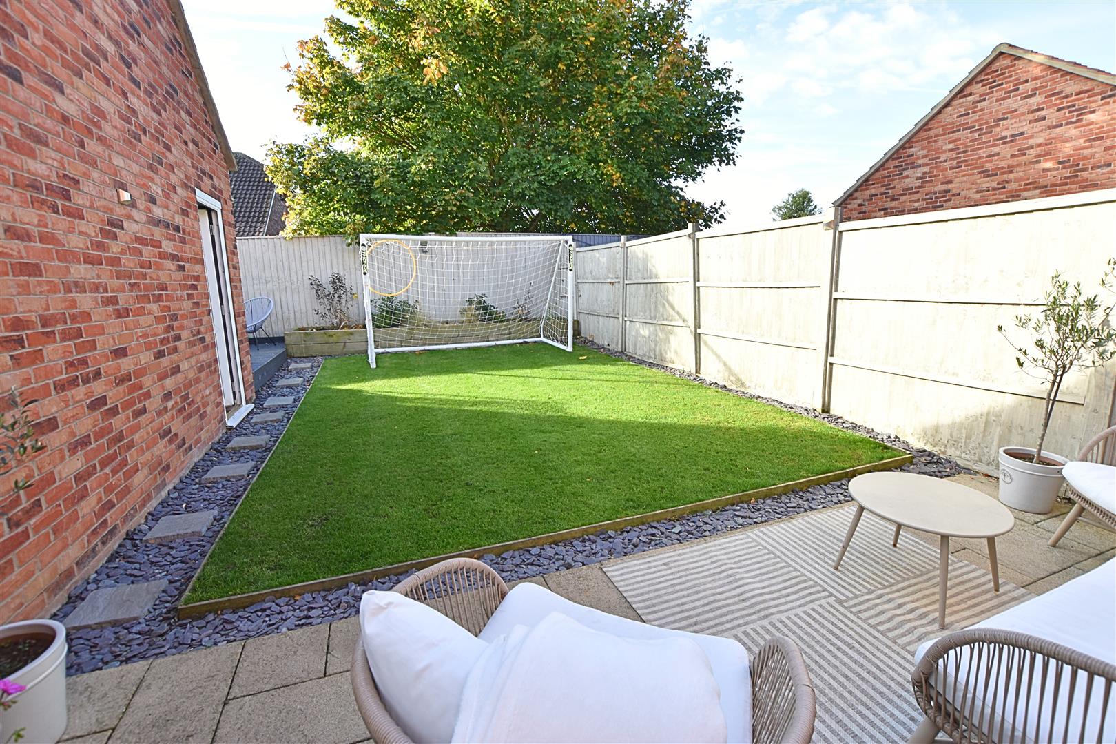 The property sits with in a cul de sac and enjoys and open plan front garden laid with slate, red brick driveway ideal for off road parking of several vehicle. Side fencing and wooden gate leading to the rear garden. The southerly facing rear garden has fenced boundaries and is laid to lawn with a paved patio leading from the property and a rear raised decked patio area finished with raised feature sleeper planting beds.