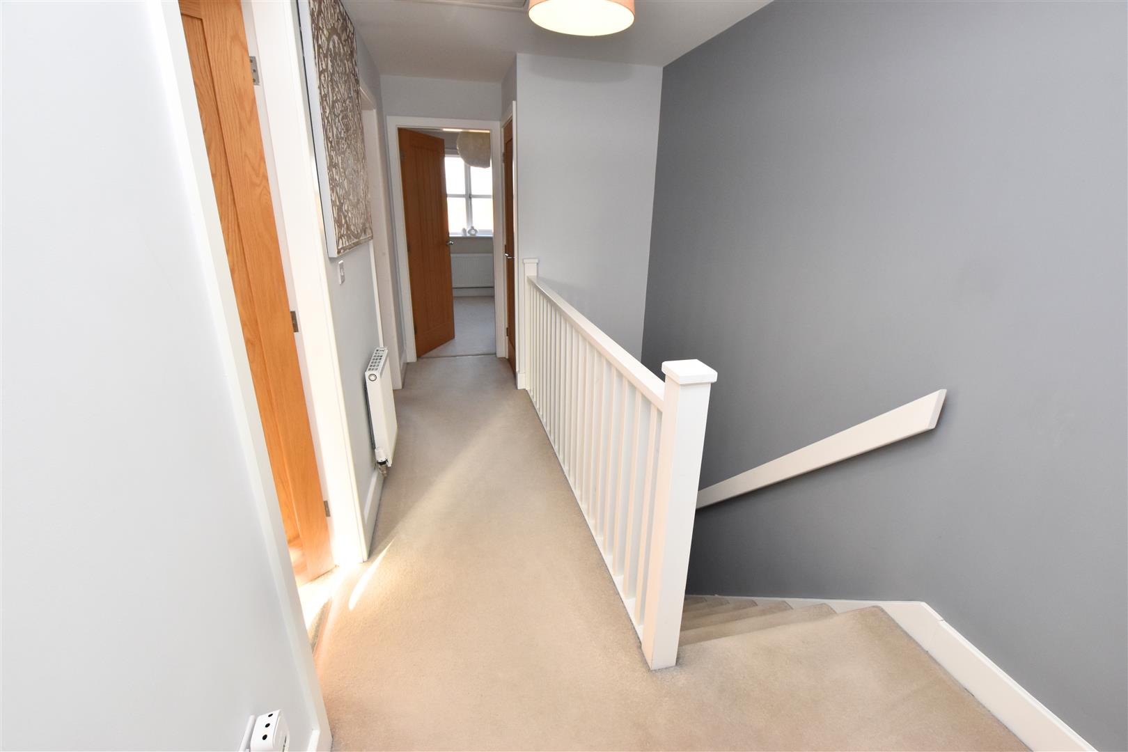 Having continued carpeted flooring, white wood spindle balustrade, radiator and loft access to the ceiling. Oak connecting doors leading to the further accommodation.