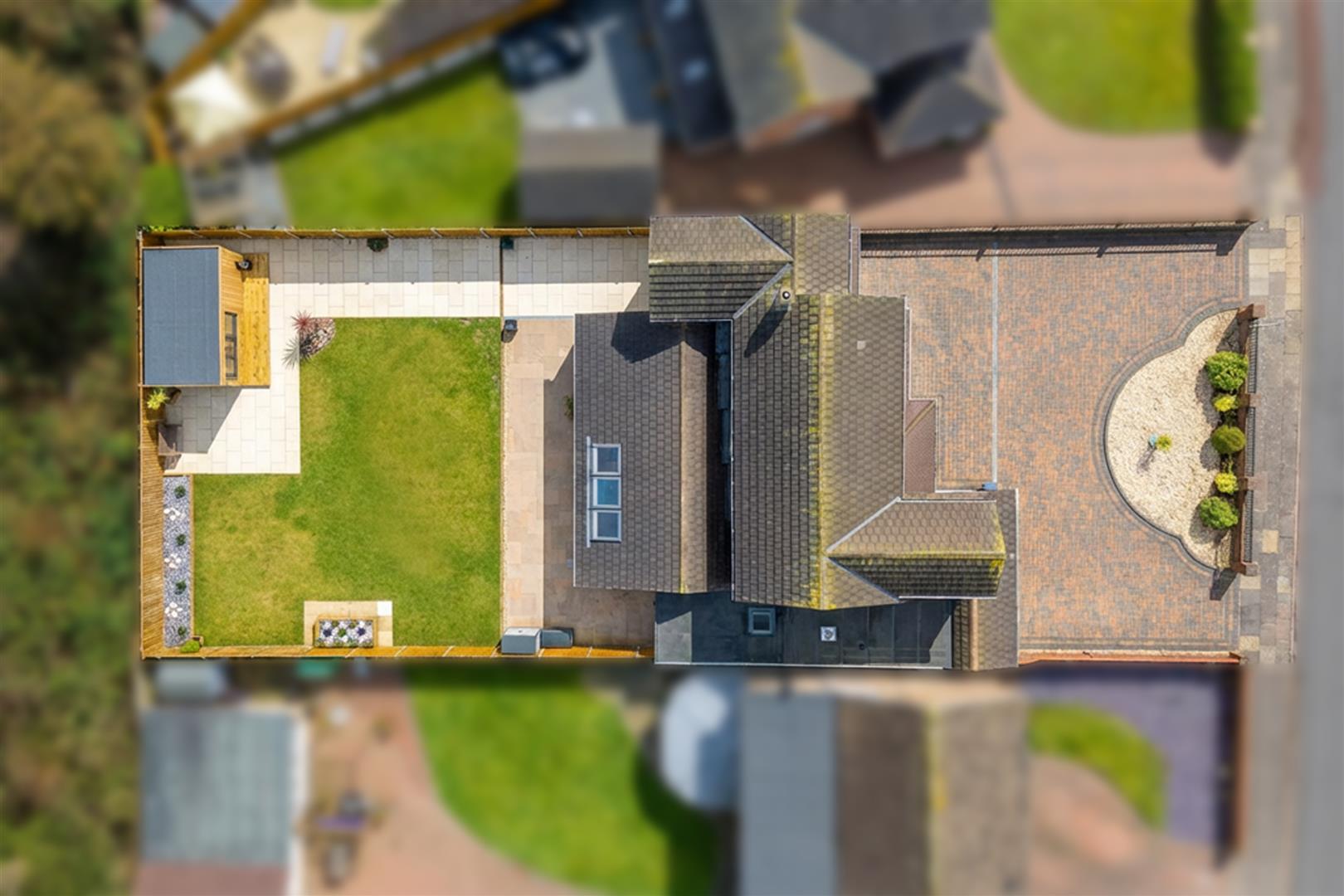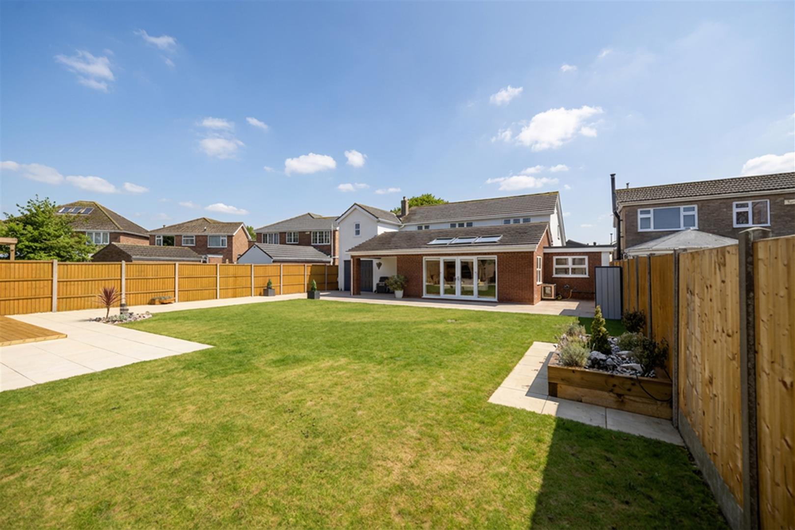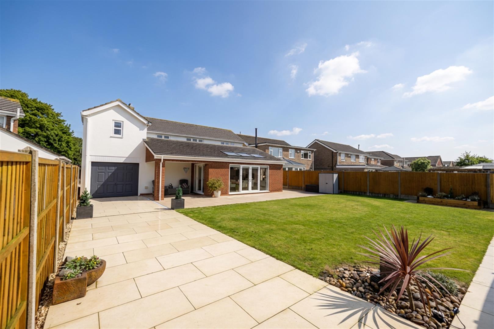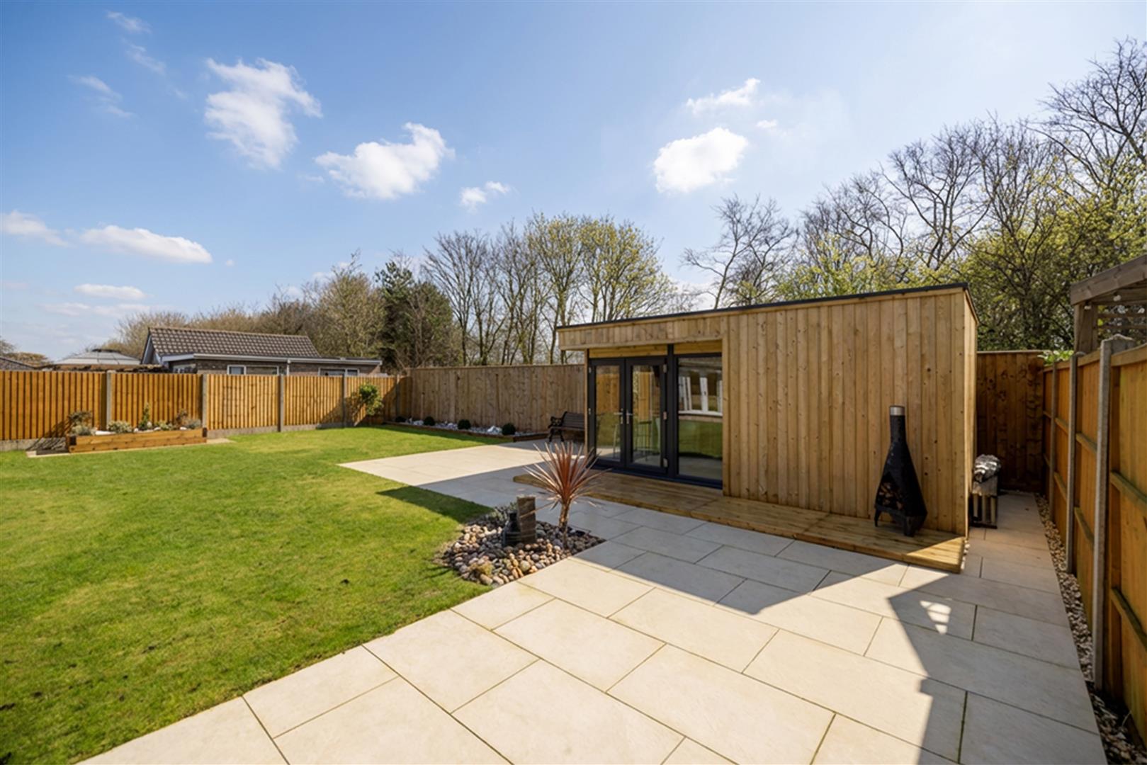 The property stand with a sweeping in and out driveway which is red brick paved and provides ample off road parking leading to the garage. Having walled boundaries and a feature gravelled with mature planting. The rear garden has been recently landscaped by the current vendors and is the ideal family garden with its a large wrap round stone patio, lawn with feature raised planters and a rear wooden decked patio with insulated timber day/home office and is enclosed by fenced boundaries.