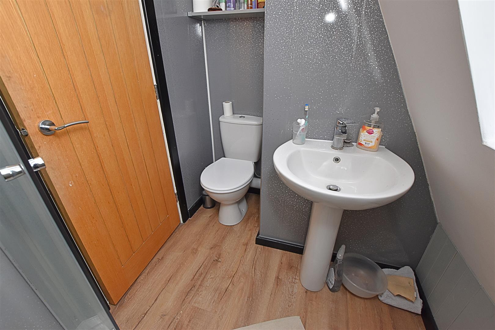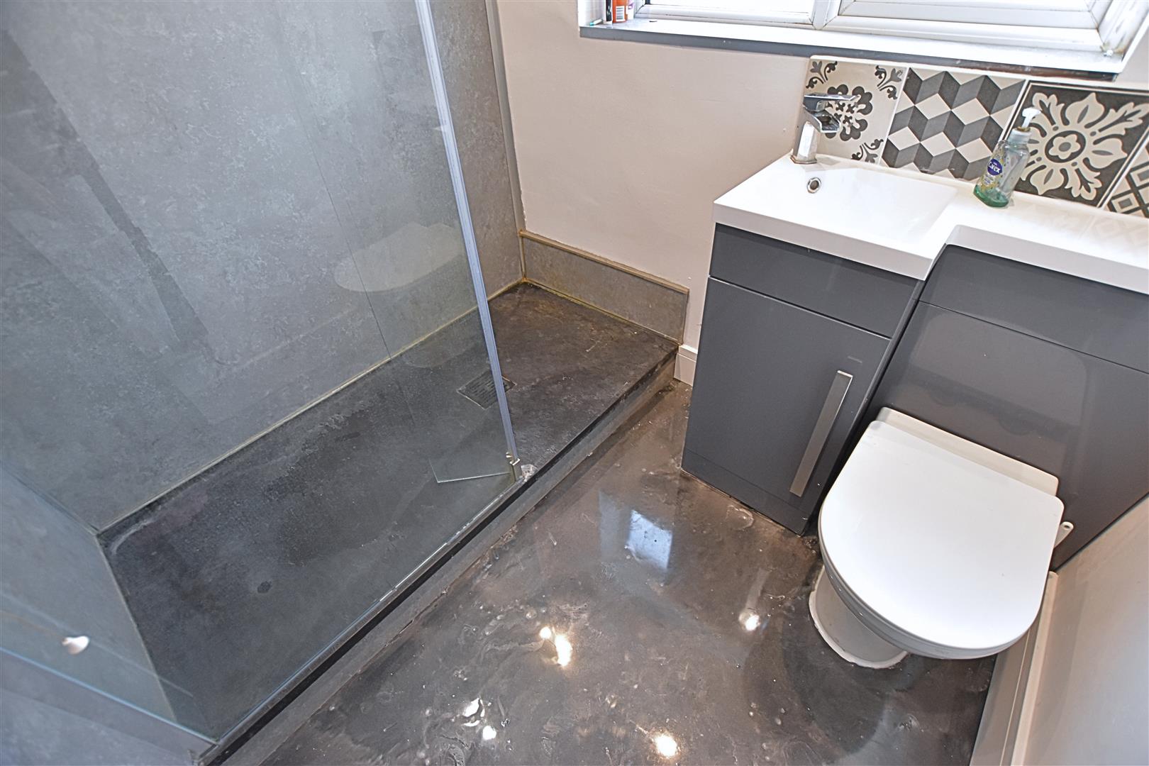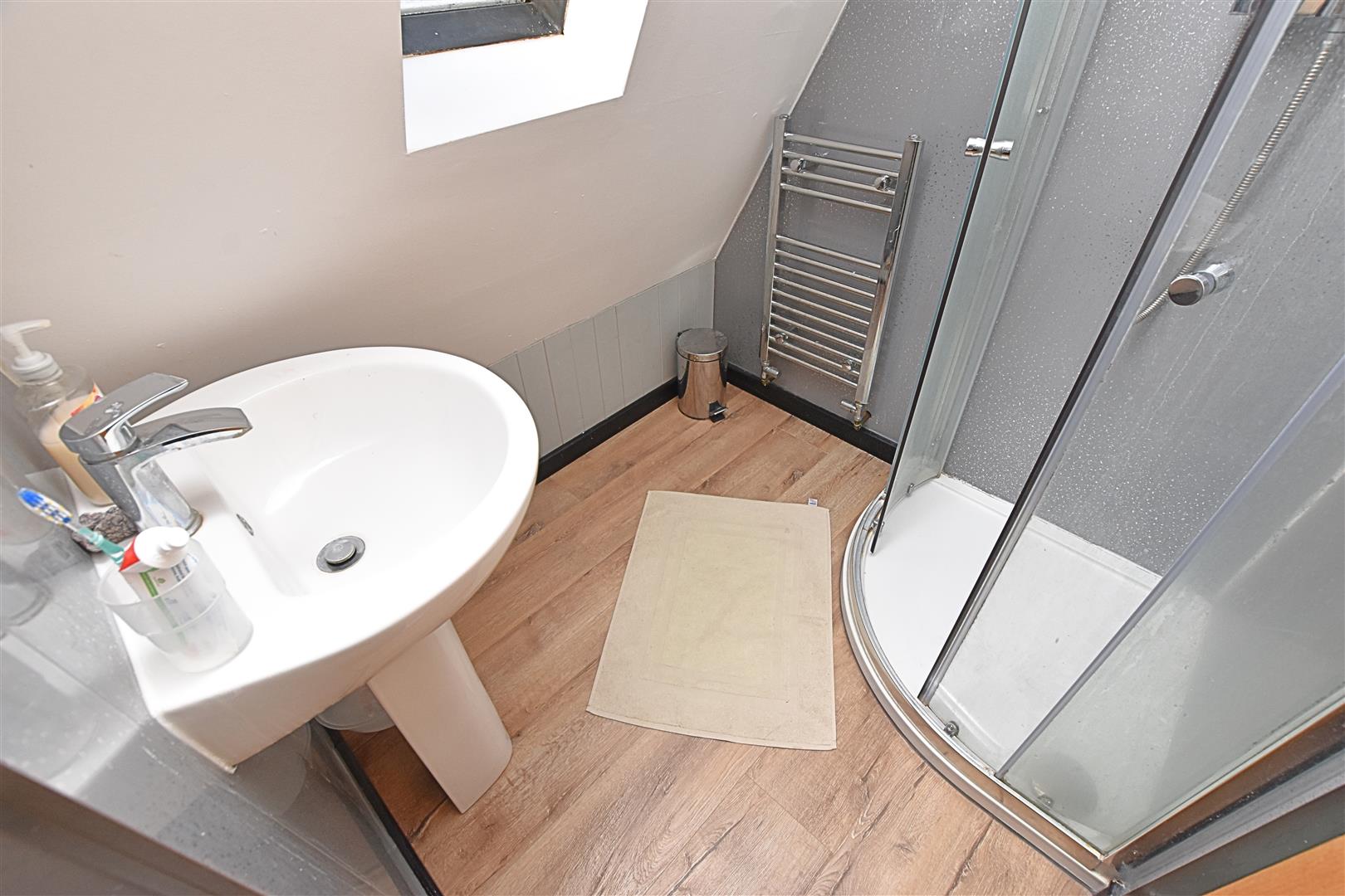 Benefitting from a white three piece suite comprising of; Corner shower with dual head one being rainfall and curved screens, pedestal hand wash basin and low flush wc. Complemented with aqua style panelling to the walls, down lights, heated towel rail, extractor fan and Velux style window to the side aspect.