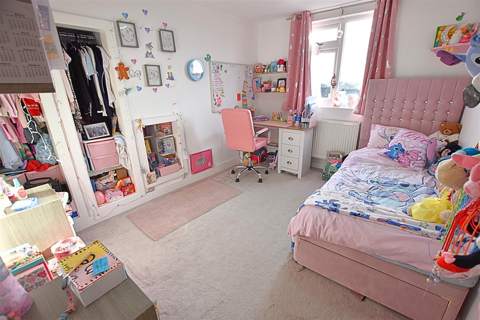 The fourth double bedroom has a built in high rise bed with open shelving having hanging rails for clothes, steps up with storage, carpeted flooring, radiator and uPVC double glazed window to the side aspect.