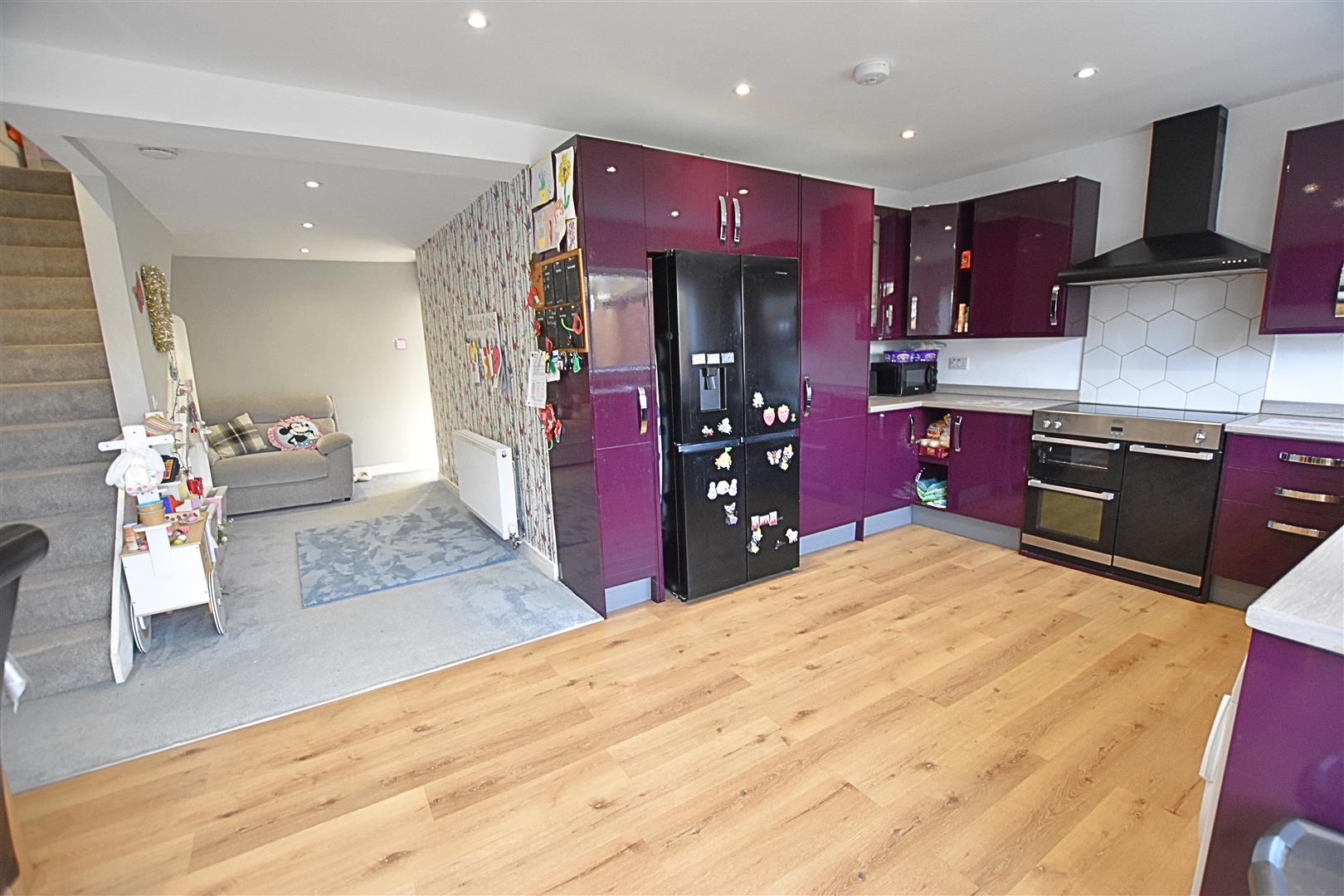 The open plan living kitchen area is the true hub of the home and benefits from a modern high gloss plum wall and base units with contrasting wood effect work surfaces and matching upstands incorporating a composite sink and drainer, Belling electric range cooker with induction hob, tiled splash back and black chimney style extractor hood. Integrated dish washer, space for an American style fridge freezer and further space for an automatic washing machine. Having ample space for a family dining table. Finished with down lights to the ceiling, wood effect LVT flooring, uPVC double glazed window and French doors with side light panels overlooking the rear garden. Open plan to the snug and rear area.
