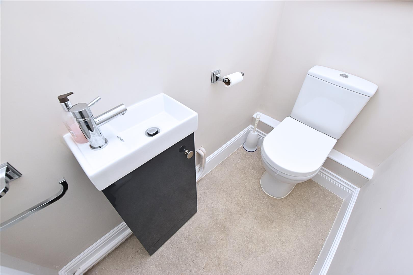 The separate toilet benefits from a white two piece suite comprising of; Low flush wc and vanity hand wash basin with handy storage, vinyl flooring and uPVC double glazed window to the side aspect.