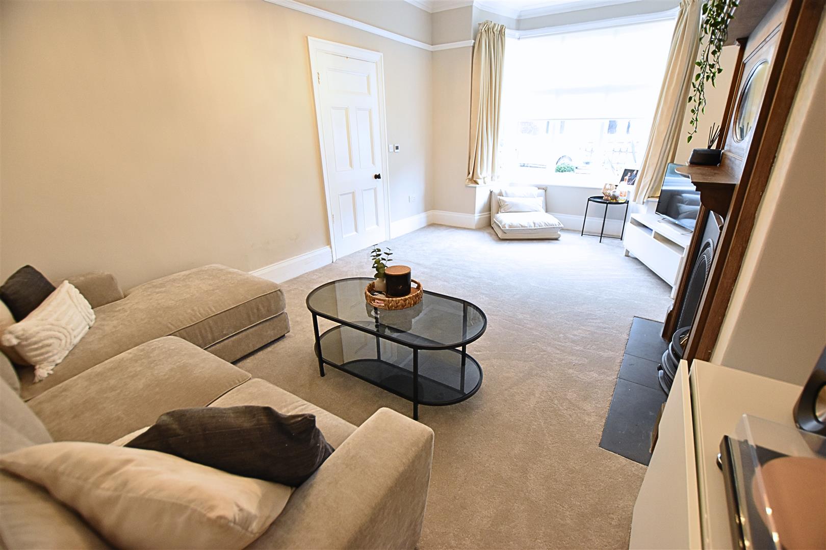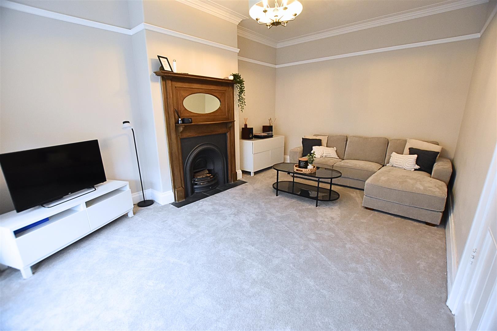 The formal lounge has a walk in bay window with coving to the ceiling and picture rail, carpeted flooring and radiator. The main focal point is the stunning Edwardian wooden fire surround with oval mirror, inset cast iron grate and tiled hearth.