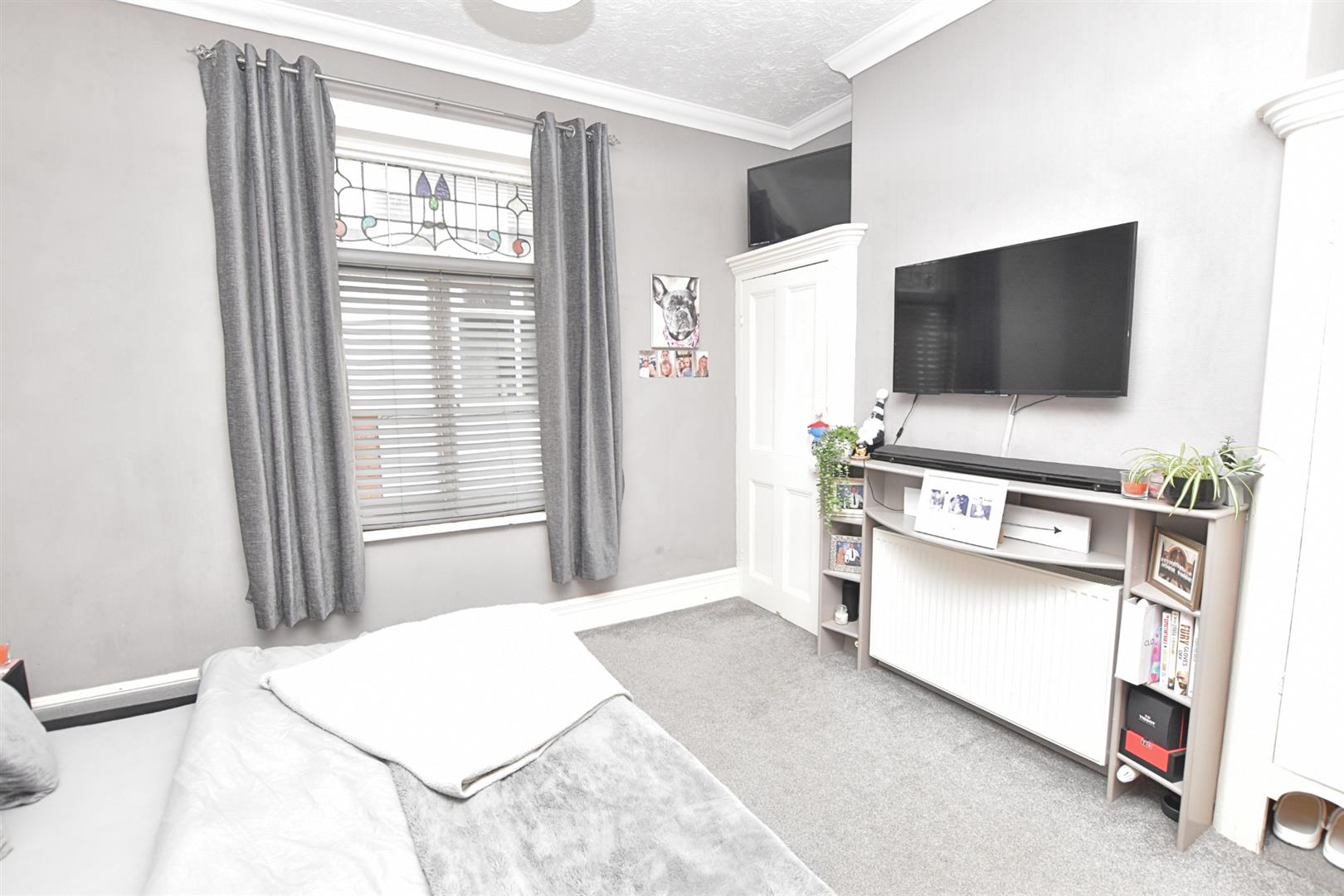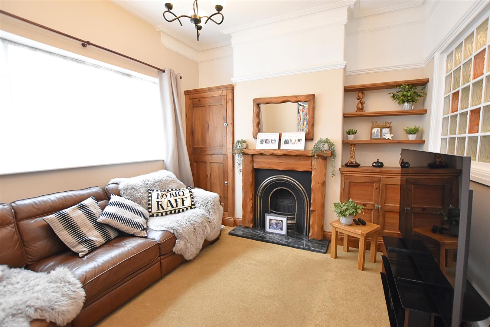 This cozy additional sitting room has a window to the side elevation, coving to ceiling and fitted picture rail together with a radiator with a decorative cover. Borrowed light from the entrance hall. Again having a wooden fireplace with provision for an open fire with two bespoke cupboards either side of the fireplace.