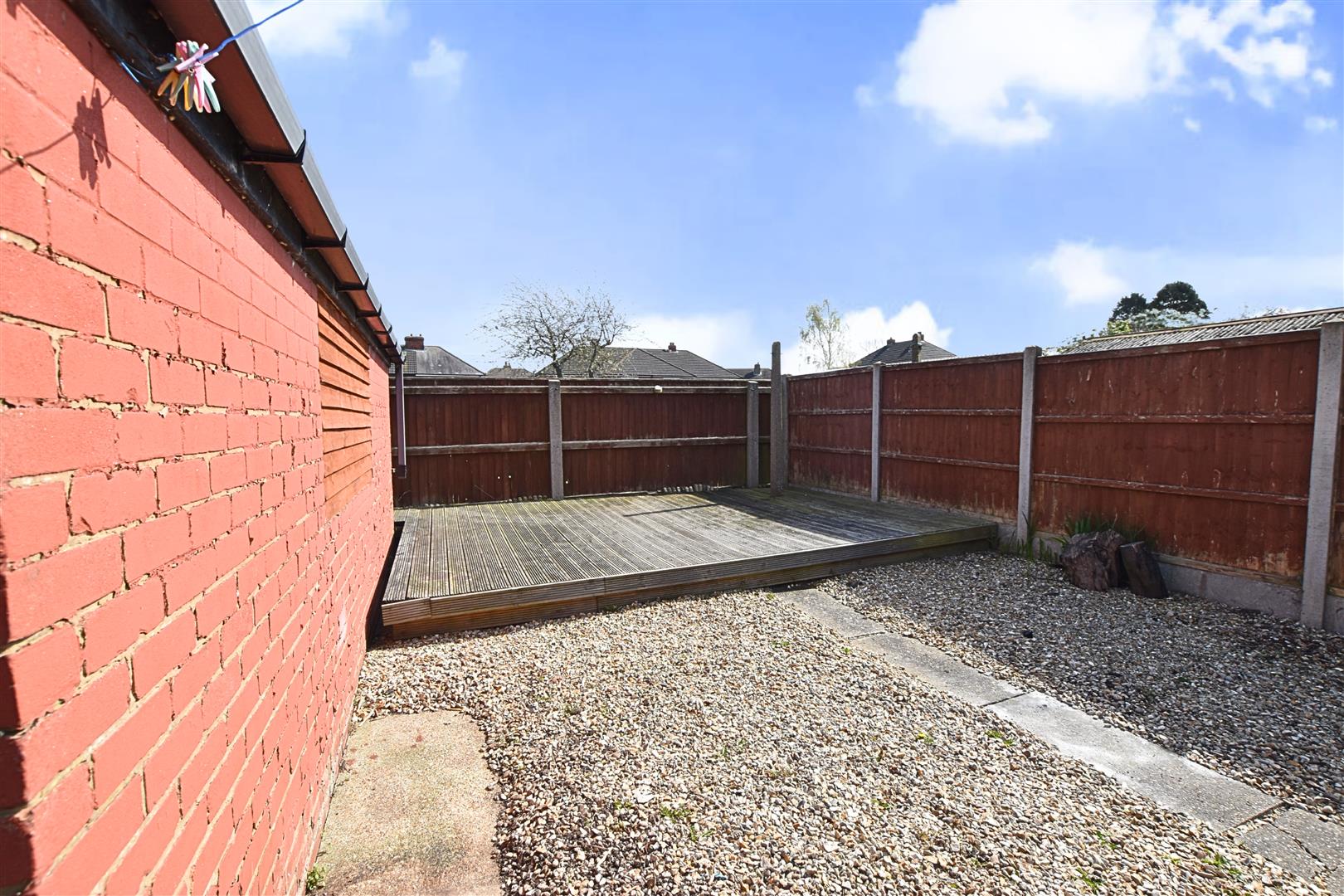 The property stands with walled boundaries to the front aspect with double wrought iron gates leading to the driveway which provides off road parking, the front garden is laid with shingle for ease and wooden gates lead you to the rear garden. The rear garden is a good size with fenced boundaries, lawn, shingle area and decked patio. Detached brick garage with double wooden doors, electric and lighting.