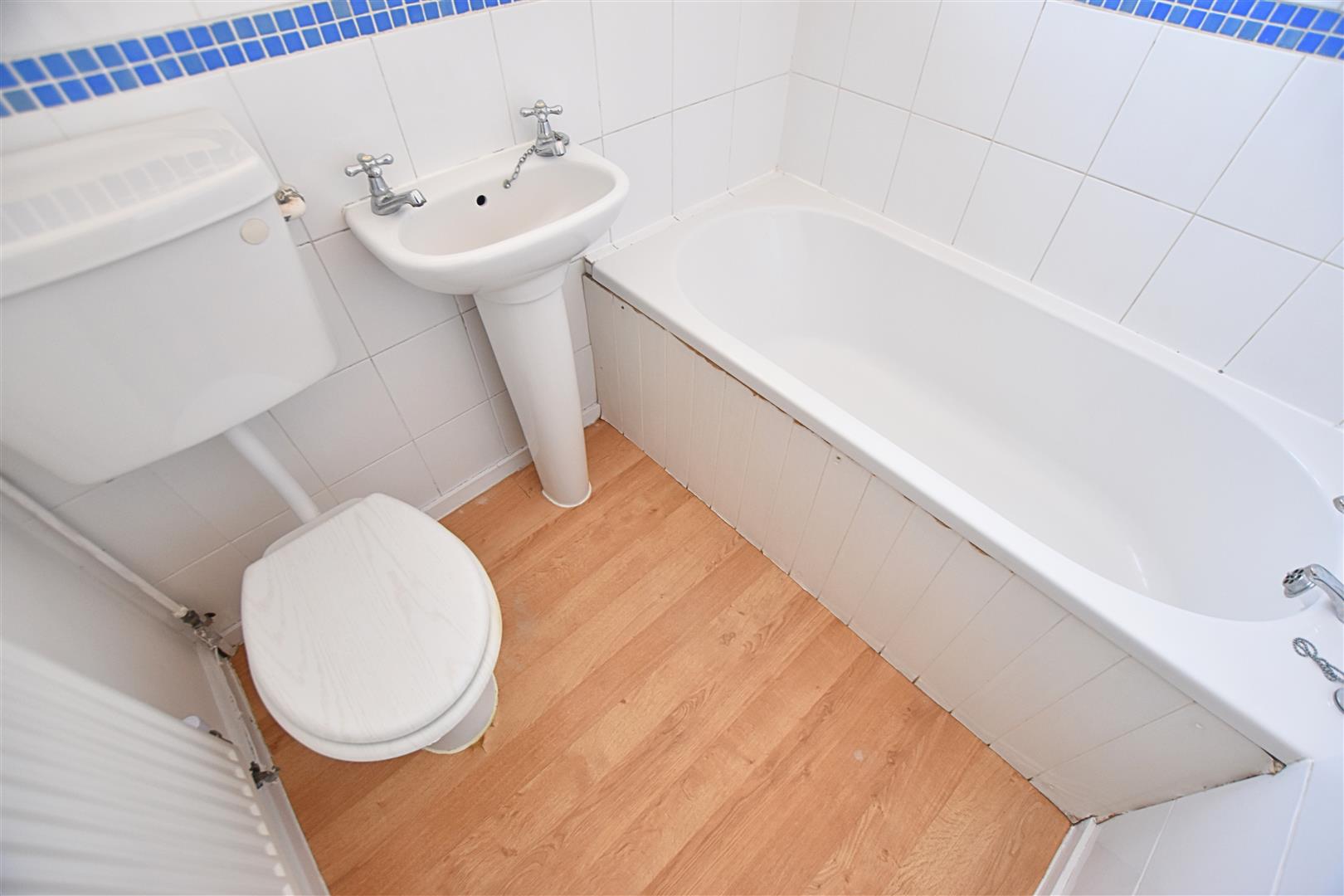 Benefitting from a white three piece suite comprising of; Bath with shower over, pedestal hand wash basin and low flush wc. Finished with part tiling to the walls, radiator, wood effect vinyl flooring and a uPVC double glazed window to the side aspect.