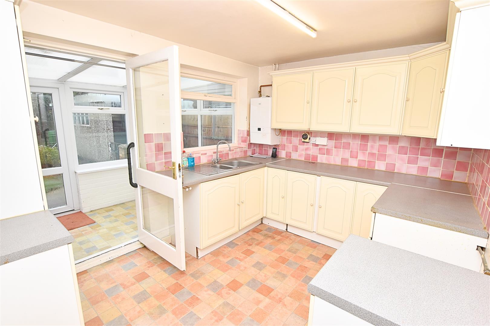 The kitchen benefits from white wall and base units with contrasting work surfaces and tiled splashbacks incorporating a stainless steel sink with drainer and ample space for slot in cooker. Finished with window to rear and vinyl flooring. Door leading to the sunroom.