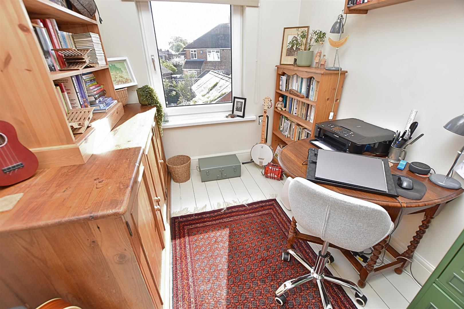 The third bedroom is presently used as a home office and has a uPVC double glazed window with blinds fitted to the rear aspect, coving to the ceiling, painted wooden floor boards and radiator fitted.