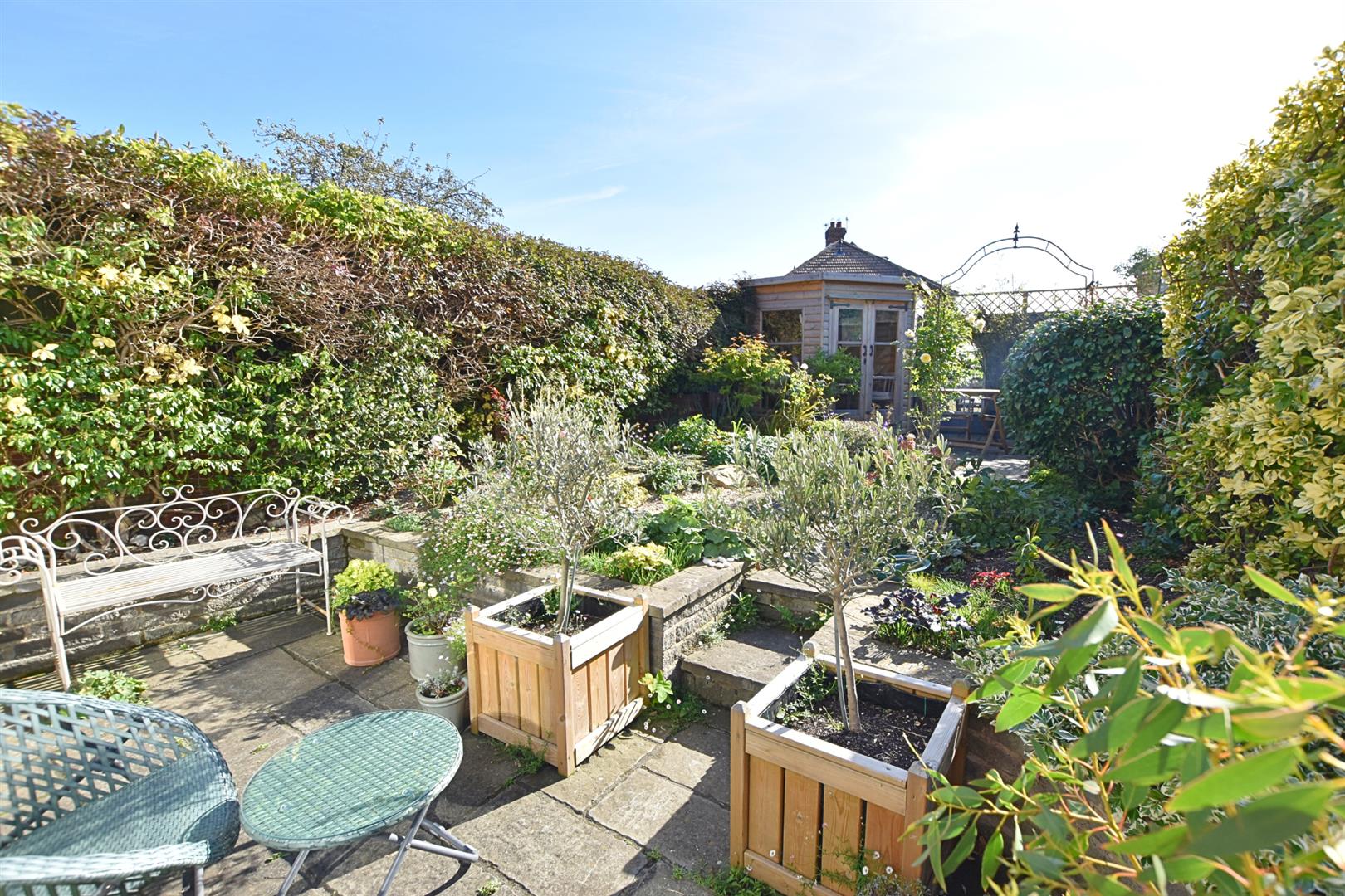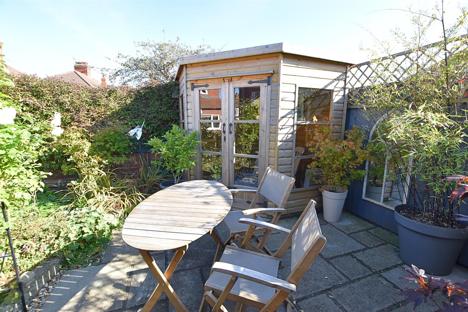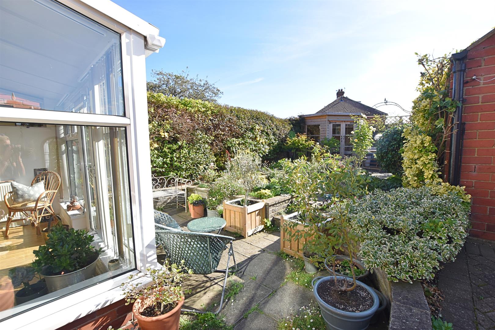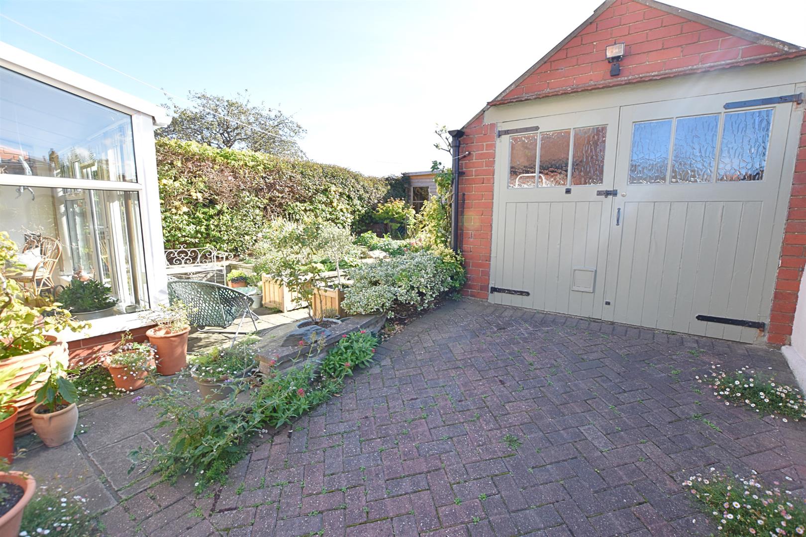 The property has a walled boundary to the front with a well stocked low maintenance front garden and a red brick paved driveway providing ample off road parking and steps leading to the front door. Double wooden gates lead to the further red brick driveway and on to the southerly facing rear garden and detached brick garage. the southerly facing rear garden is the ideal sun trap for summer days and outside entertaining, having a mixture of fenced and hedged boundaries and being mainly paved on two levels with dual aspect patio areas. Mature planting to the borders and feature rockery areas. Finished with a delightful wooden summer house overlooking the garden which can be used all year round.