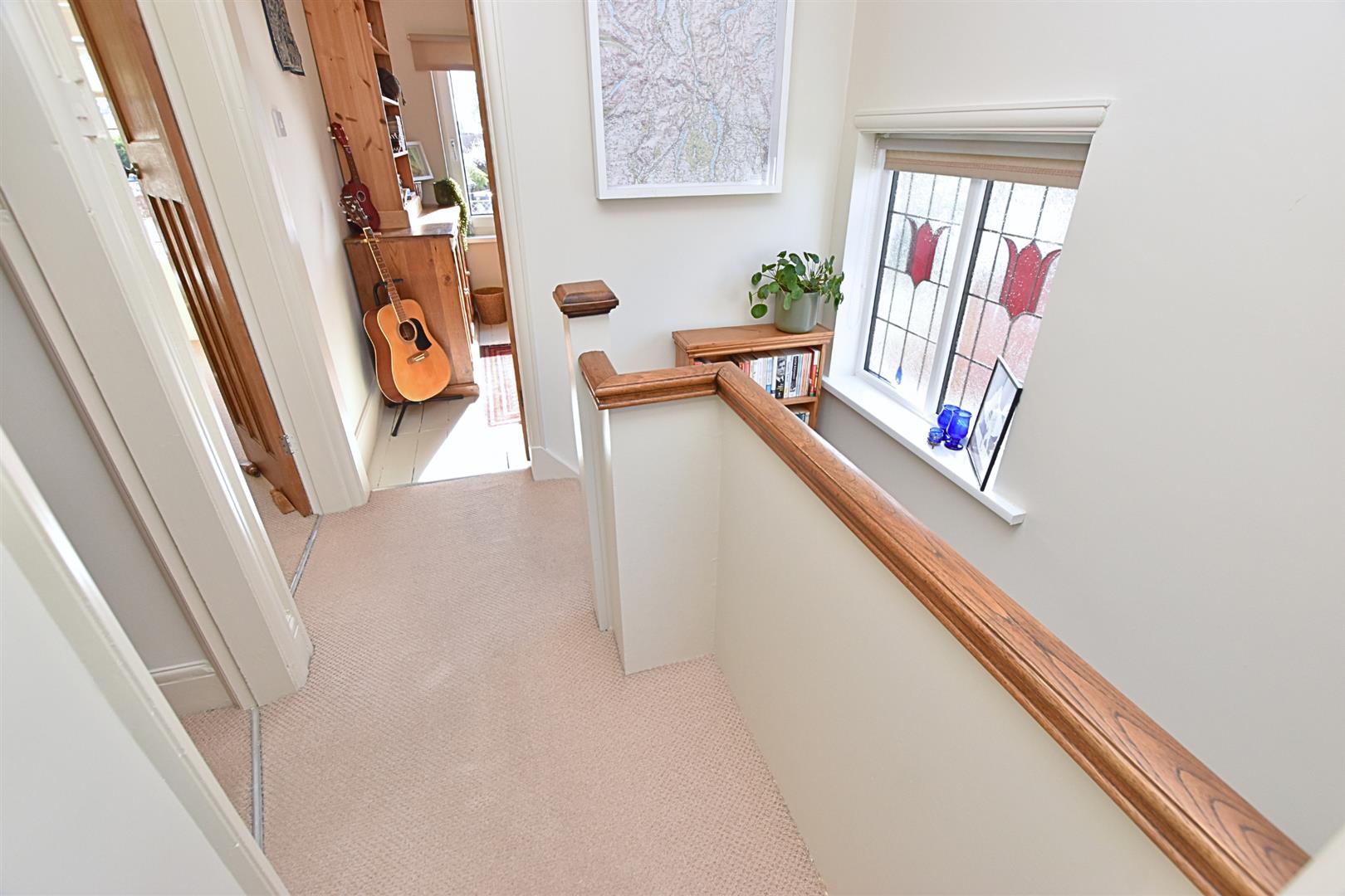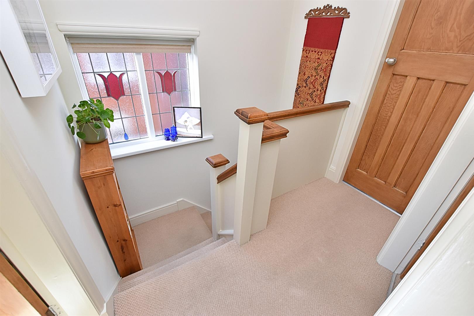 The landing is approach by the returned carpeted staircase with enclosed bannister having Oak hand rail with matching carpeted flooring, uPVC double glazed window with feature stained glass to the side aspect and loft access to ceiling. Original stripped Oak connecting doors. The loft has partial board and is fitted with electric and lighting.