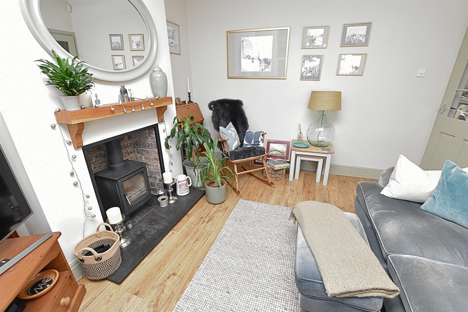 The first reception lounge has a uPVC double glazed bay window with fitted blinds to the front aspect, coved ceiling, high skirtings, wood effect laminate flooring and radiator fitted. The main focal point is the open chimney breast with exposed brick back, slate hearth and multi fuel stove fitted.