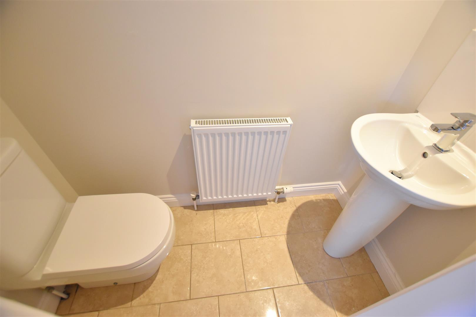 Benefitting from a white two piece suite comprising of; Low flush wc and pedestal hand wash basin with tiled splashbacks, tiled flooring and radiator fitted.