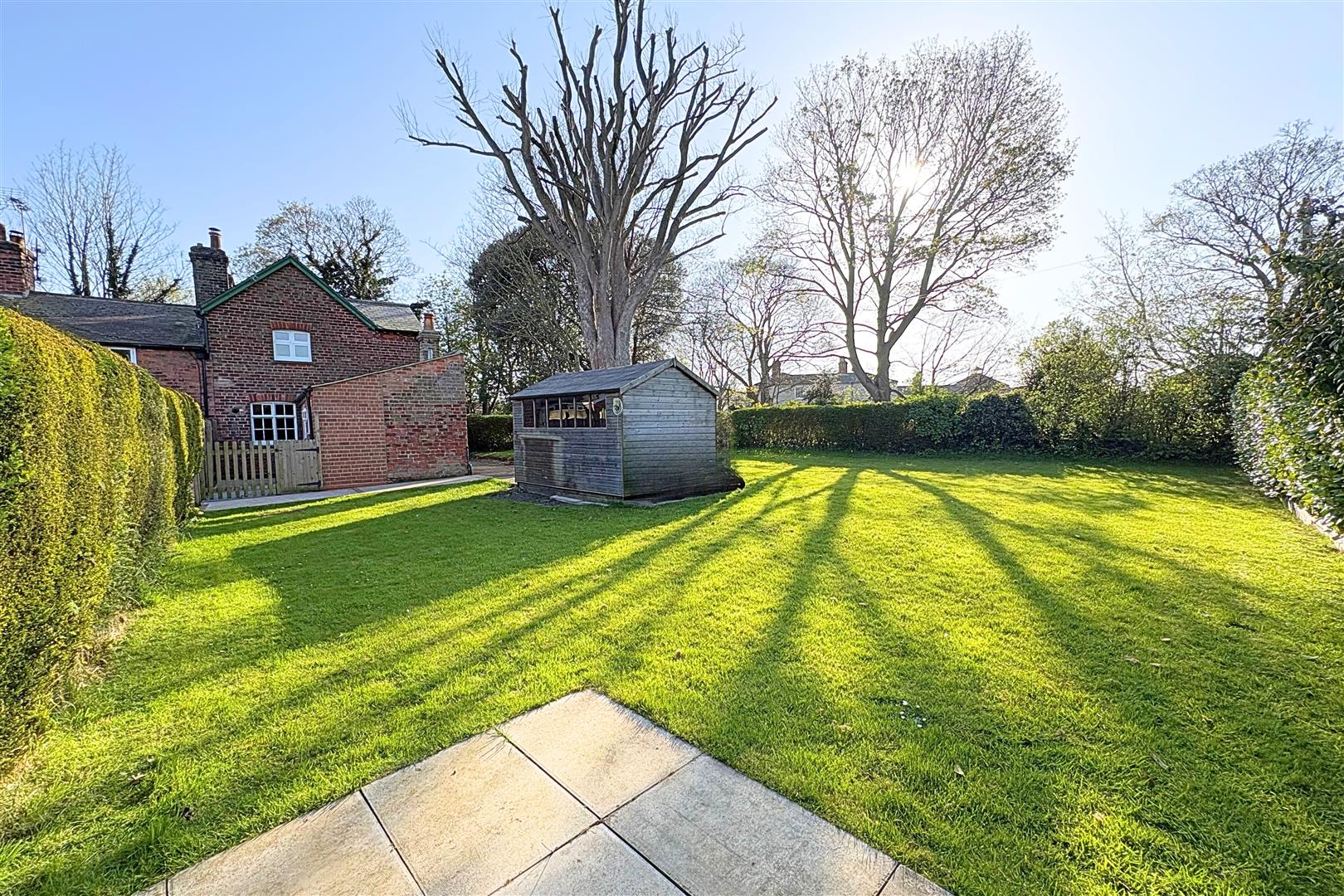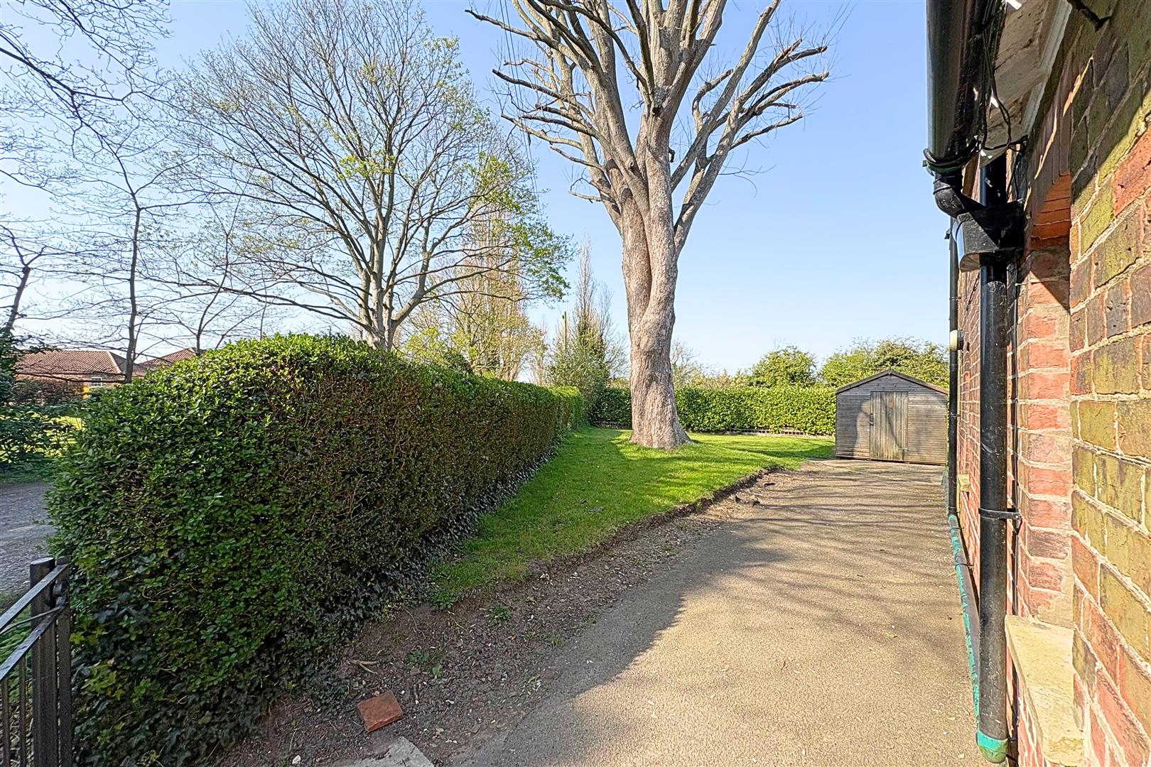As previously mentioned the property stands on a substantial corner plot with mature hedged boundaries. A small front garden is set behind a small fence and is lawned and includes an established hydrangea plant. Double wrought iron gates leads on to a concrete driveway which provides off road parking. The excellent side and rear gardens are lawned, inset with a large Sycamore tree which has a Tree Preservation Order and included in the sale is a timber garden store.