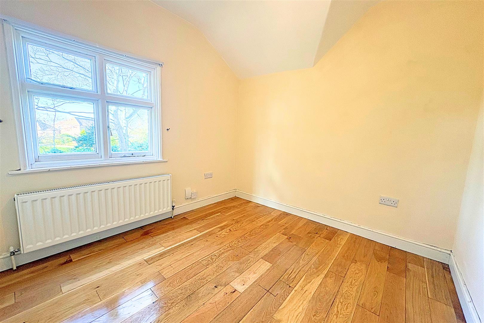 Single glazed window to the front elevation, striking oak flooring, radiator and an ornate cast iron grate.