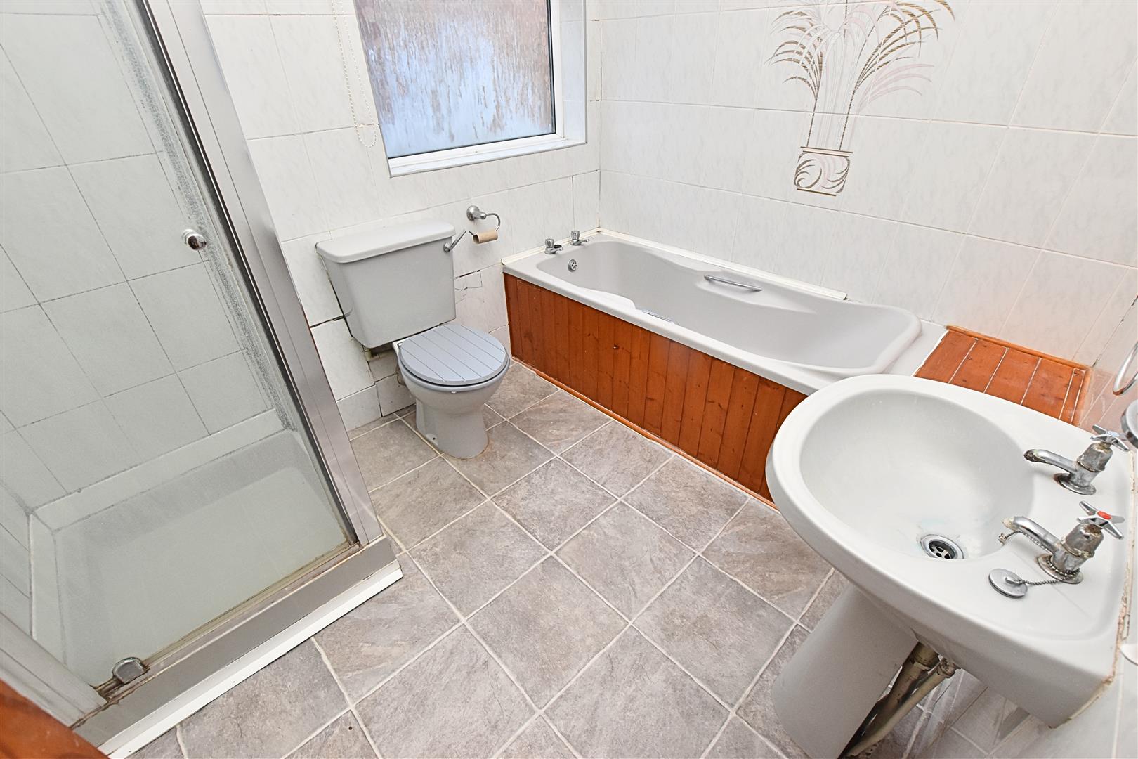 Benefitting from a four piece suite comprising of; Bath, shower cubicle, pedestal hand wash basin and low flush wc. Having tiling to the walls, vinyl flooring and uPVC double glazed window.