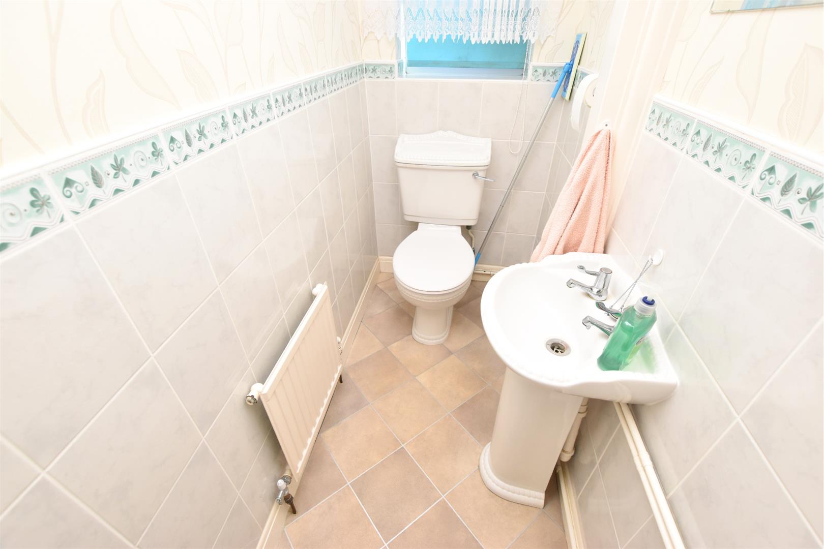 Benefitting from a white two piece suite comprising of; Low flush wc and pedestal hand wash basin. Finished with part tiled walls, tiled effect vinyl flooring, radiator and a uPVC double glazed window to the side aspect.