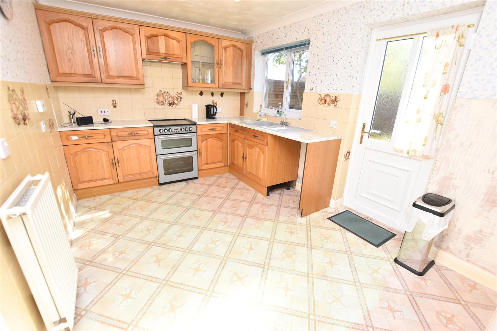 The kitchen diner benefits from a range of wood fronted wall and base units with contrasting worksurfaces and tiled splash backs. Incorporating a composite sink and drainer, slot in electric oven with space for a freestanding fridge freezer and automatic washing machine. Finished with coving to the ceiling, tiled effect vinyl flooring, radiator, uPVC double glazed window and door overlooking the garden. Ample room for a family dining table.