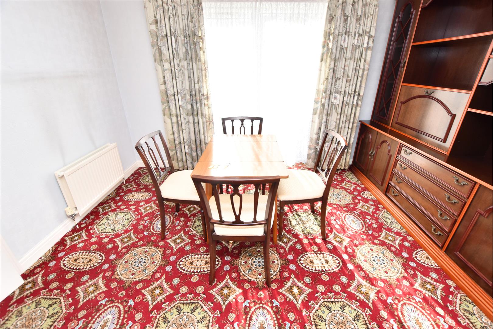The lounge has a uPVC double glazed bow window to the front aspect, coving and decorative rose to the ceiling with feature alcoves, ornate fire surround with marble back and hearth and electric fire, carpeted flooring and radiator. Open arch to the dining room.