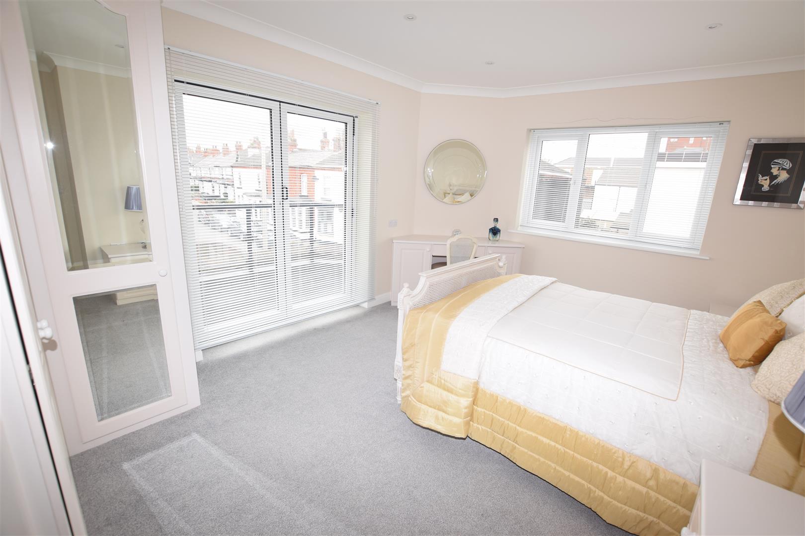 Double glazed French doors giving lots of natural light and lead onto the Juliette balcony to the rear. Additional double glazed window to the side aspect. Built in wardrobes incorporating matching dressing table and bedside units. Recess lighting to the ceiling
