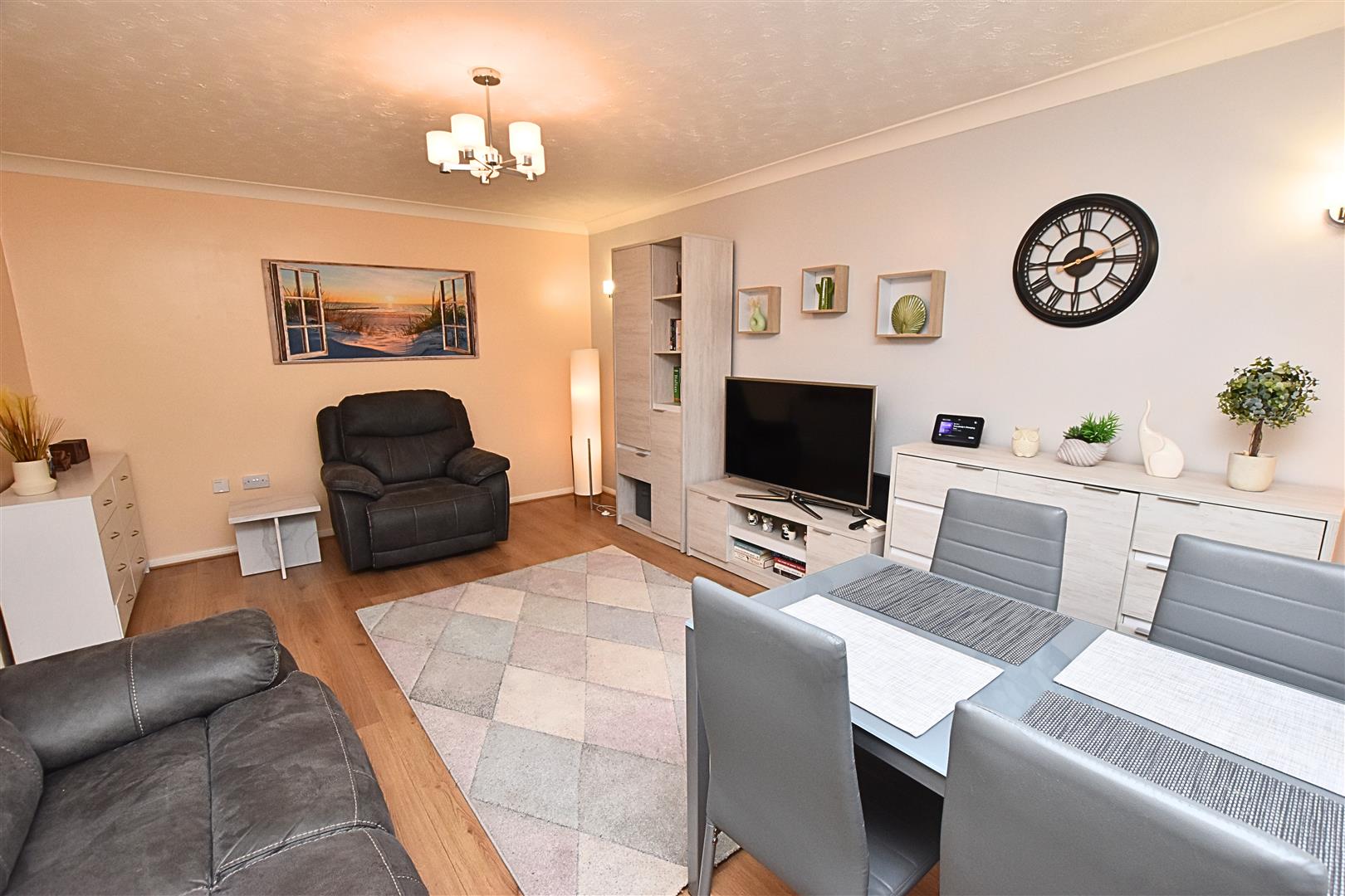This excellent sized room has a double glazed window to the front elevation, coving to ceiling, striking laminate flooring and an electric storage heater. Ample space for both a dining table and sofas.