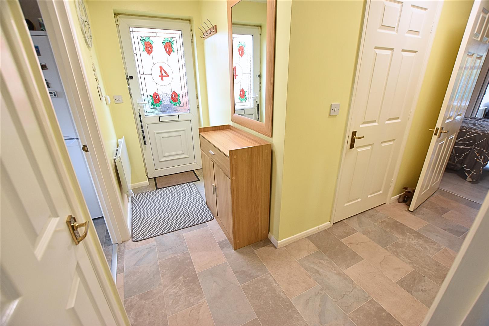 This welcoming L shaped entrance hall is accessed via a double glazed entrance door and has coving to ceiling, Newly fitted economy heater and vinyl flooring. Useful storage cupboard and security alarm pad.