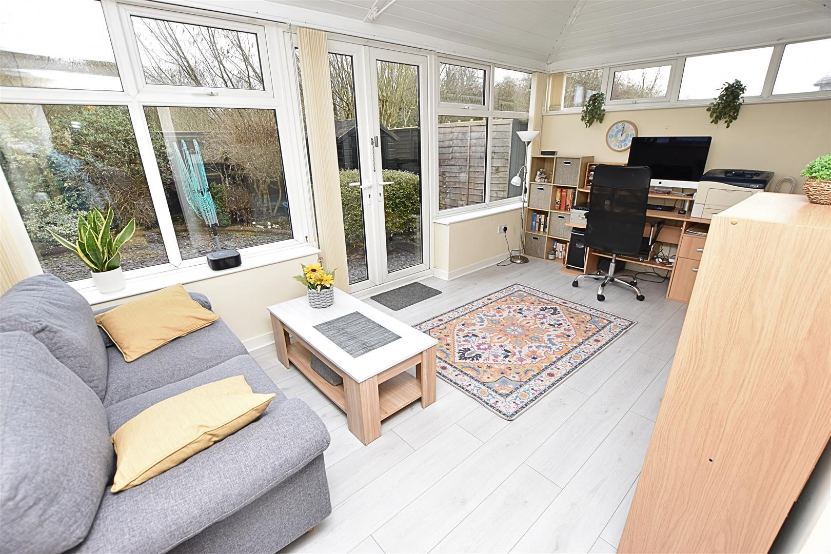 This fabulous addition to the bungalow is the excellent sun room which has double glazed windows and doors which open onto the rear garden. Laminate flooring and a thermal moderating roof which keep the sun room cool in the summer and warm in the winter. Newly installed economy heater.