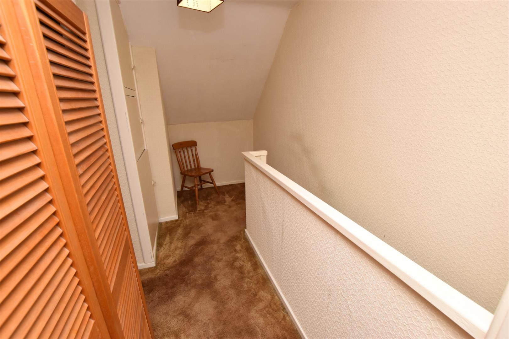 Having continued carpeted flooring with enclosed banister and two handy storage cupboards.