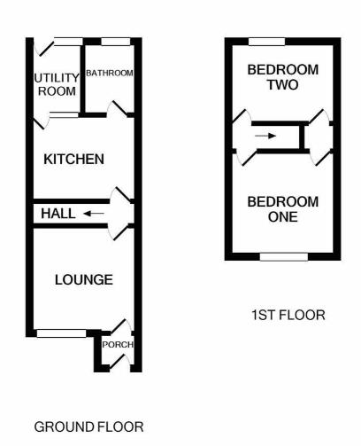 A traditional Med Terrace property in popular residential location with accommodation comprising Entrance Porch, Living Room with exposed chimney recess. Dining kitchen with built in oven, hob & extractor. Rear Utility and ground floor bathroom with white suite. First floor has TWO GOOD SIZE BEDROOMS. Gardens to the front & rear. Gas Central heating system and majority double glazing.
