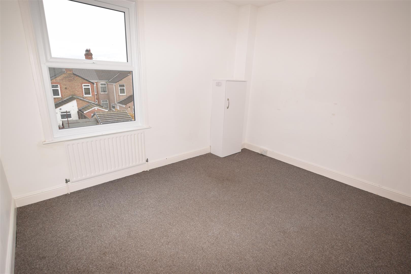 Double glazed window to the rear. Built in shelved cupboard, additional built in slim low cupboard housing the gas central heating boiler. Central heating radiator