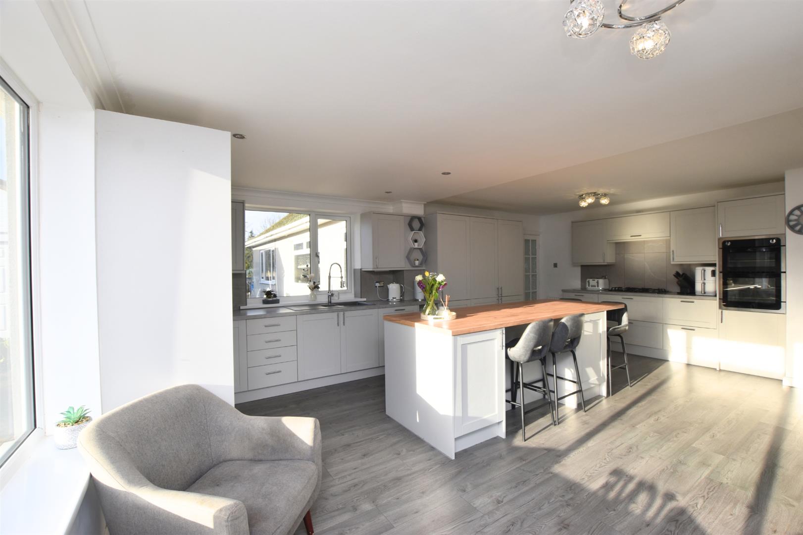 Standing on an excellent sized elevated plot is this SUPERBLY PRESENTED DETACHED THREE BEDROOM DORMER BUNGALOW which has been finished to a high standard. The accommodation has been extended and improved over recent years and now includes: Entrance hall, good sized formal lounge, extended living dining kitchen with integrated appliances, two ground floor double bedrooms, a contemporary styled bathroom/wc including shower cubicle plus a separate shower room. To the first floor is a third double bedroom. Gas central heating system. Double glazing. Detached double brick garage. Mainly lawned gardens with views to the rear towards open countryside.