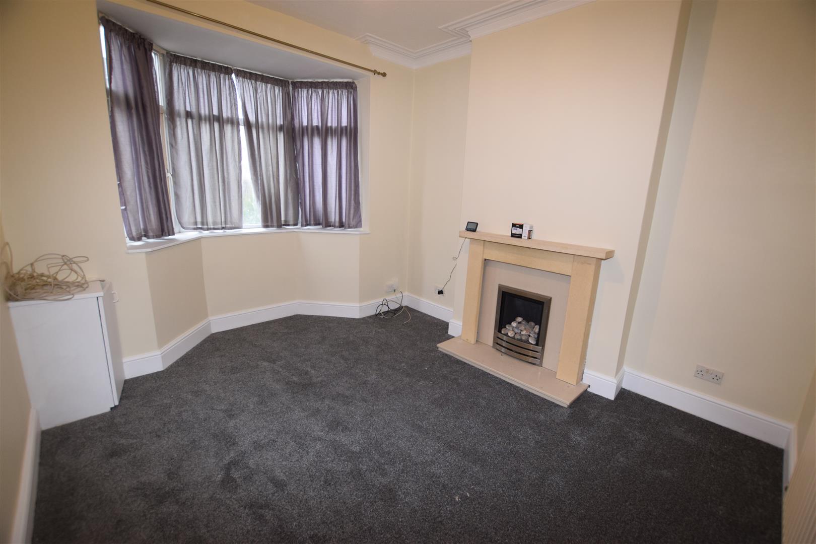With walk in double glazed bay window to the front, feature fireplace with pebble design gas fire inset. Central heating radiator