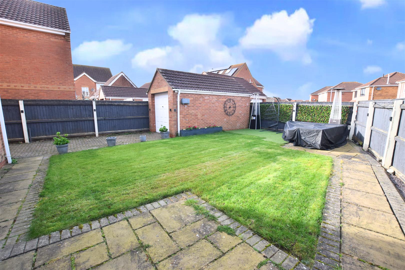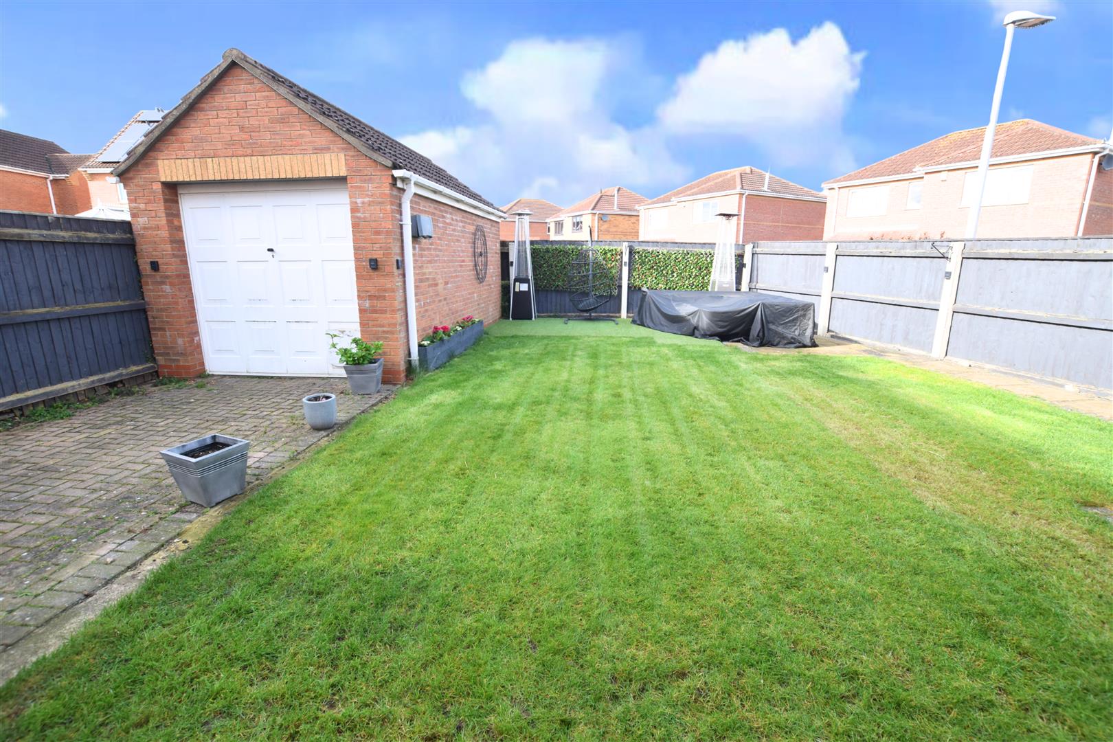 The front garden has neat lawn being open plan in design with planted beds, ornamental trees.. A block paved driveway provides off street parking with double wrought iron gates leading to the remainder of the driveway and GARAGE. The rear garden has a neat lawn with paved patio areas, artificial grassed area to the rear. Boundaries are fenced. Security light and outside tap.