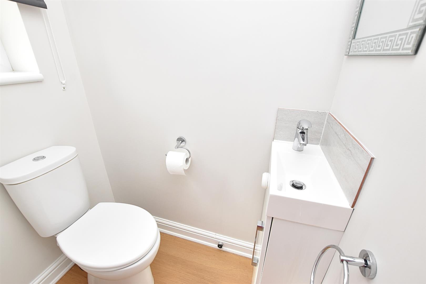 Fitt6ed with a low flush wc and white vanity unit. Vinyl flooring. Extractor fan. Vinyl flooring. Double glazed window.