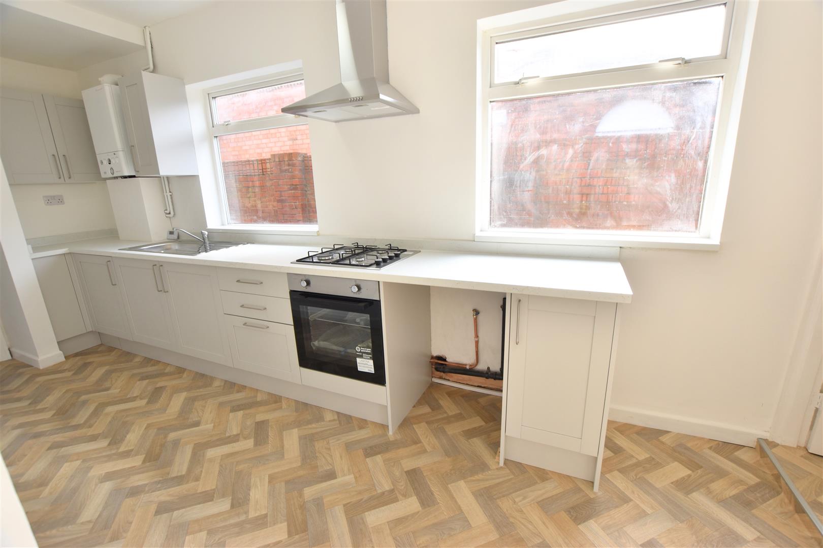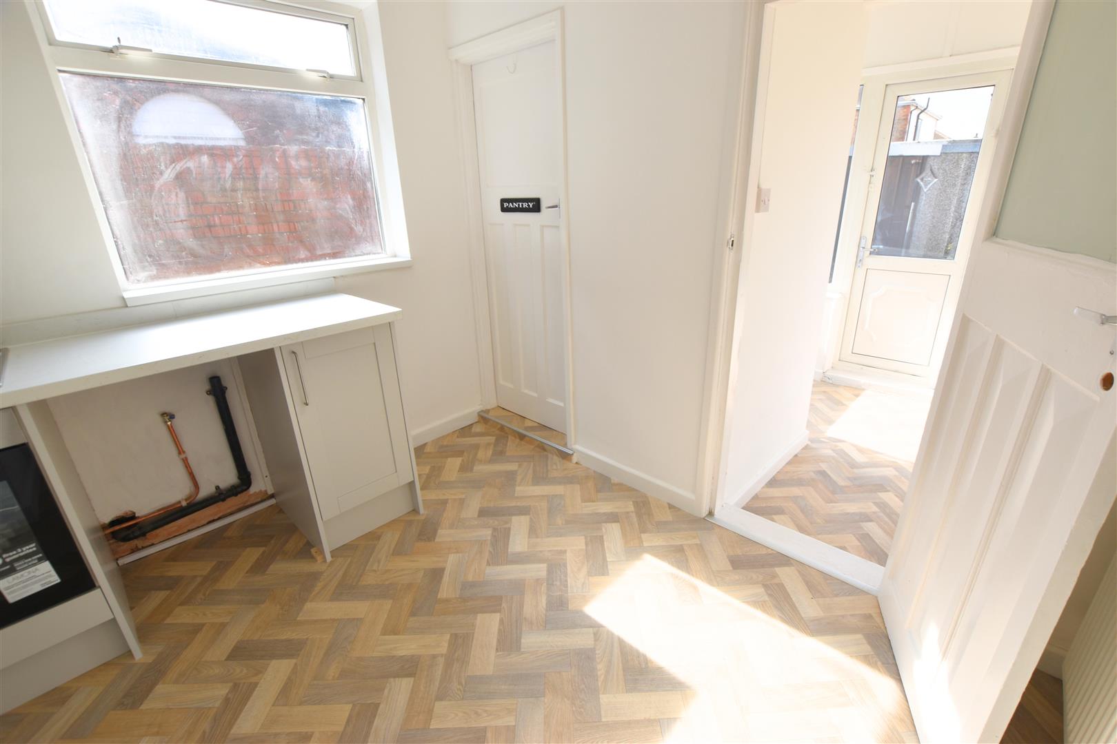 The newly fitted modern kitchen benefits from a range of grey shaker style wall and base units with contrasting work surfaces and matching upstands and incorporates a stainless steel sink and drainer, gas hob with chimney style extractor hood above and electric fan assisted oven beneath with ample space for a freestanding fridge freezer and automatic washing machine. Wall mounted boiler and finished with two uPVC double glazed windows to the side aspect, radiator, Herringbone style vinyl flooring and door leading to the useful pantry.