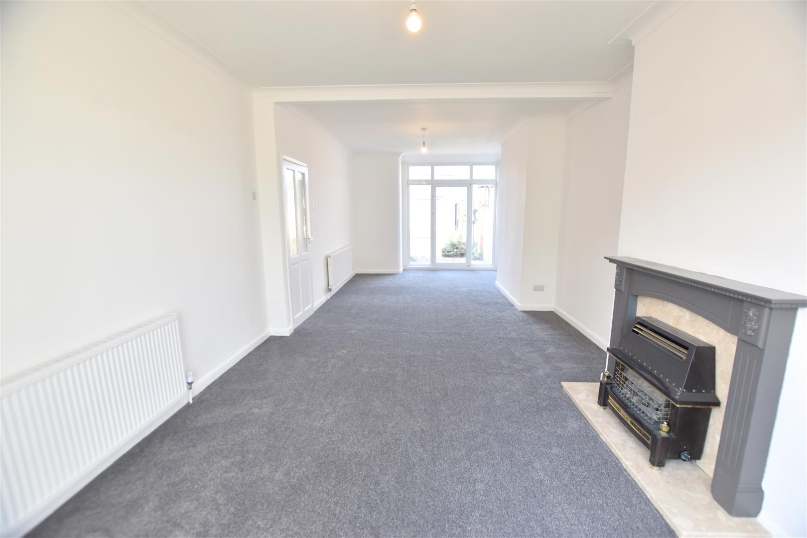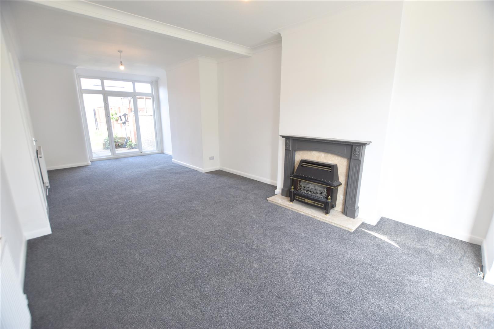 This fantastic sized room has a uPVC double glazed window to the front aspect, coving to the ceiling, newly fitted carpeted flooring, radiator and feature hand painted fire surround with marble hearth and back and gas fire to one end, with uPVC double glazed door with side and top light panels leading to the paved patio area. A fabulous space for a growing family.