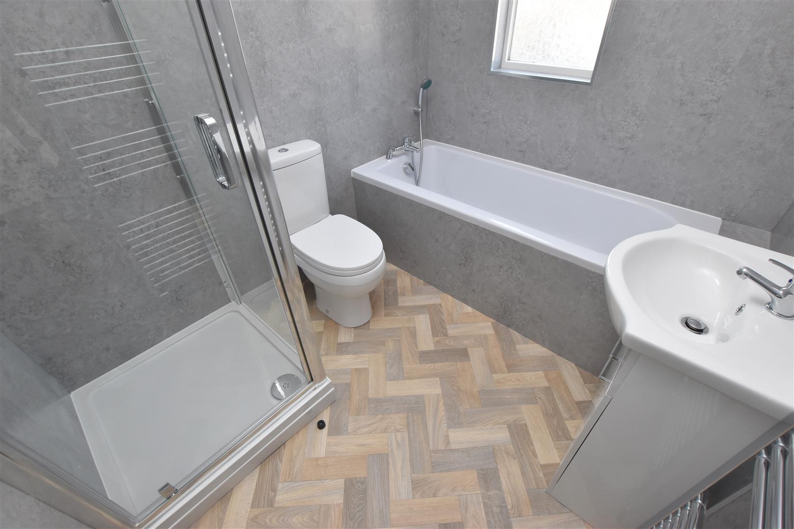 The newly fitted modern bathroom benefits from a white four piece suite comprising of; Bath with hand shower attachment, shower with glazed screens, vanity hand wash unit with handy storage and a low flush wc. Finished with aqua style paneling to the walls, Herringbone style vinyl flooring, heated towel rail, extractor fan and uPVC double glazed window to the rear aspect.