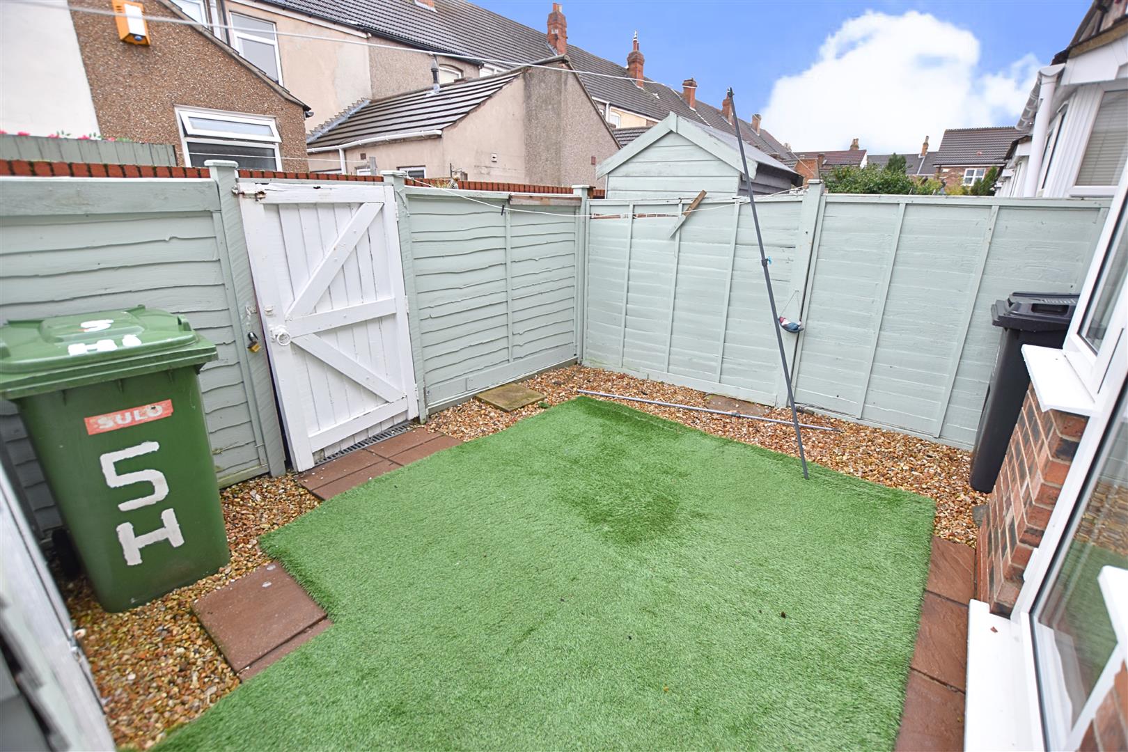 The property has an enclosed rear patio garden with boundaries defined by timber fencing. Rear pedestrian gated access. Garden shed.