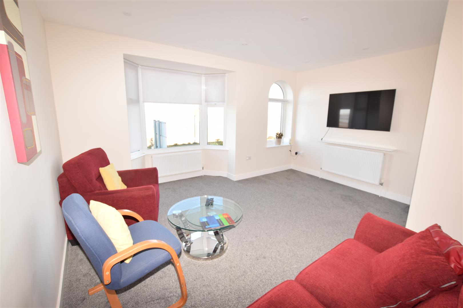 With walk in double glazed bay window and additional arch formed window – allowing lots of natural light into the room and boasts fabulous views over the promenade and river beyond. 2 x central heating radiator. Recess lighting to the ceiling. TV aerial connection