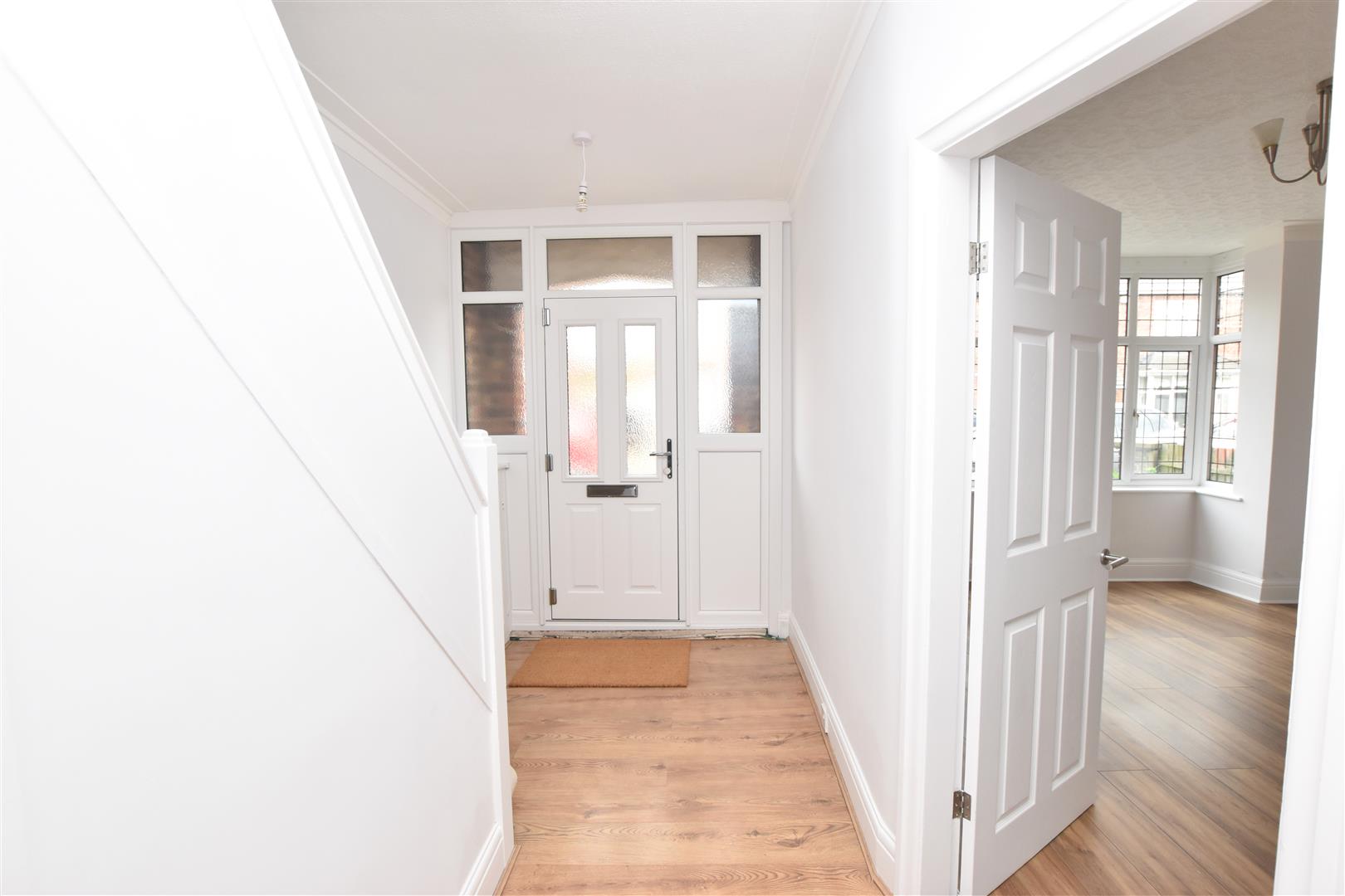 Approached via a black composite entrance door with double glazed side panels, this good sized entrance hall has coving to ceiling, radiator with the staircase which leads up to the first floor which has a useful storage below.