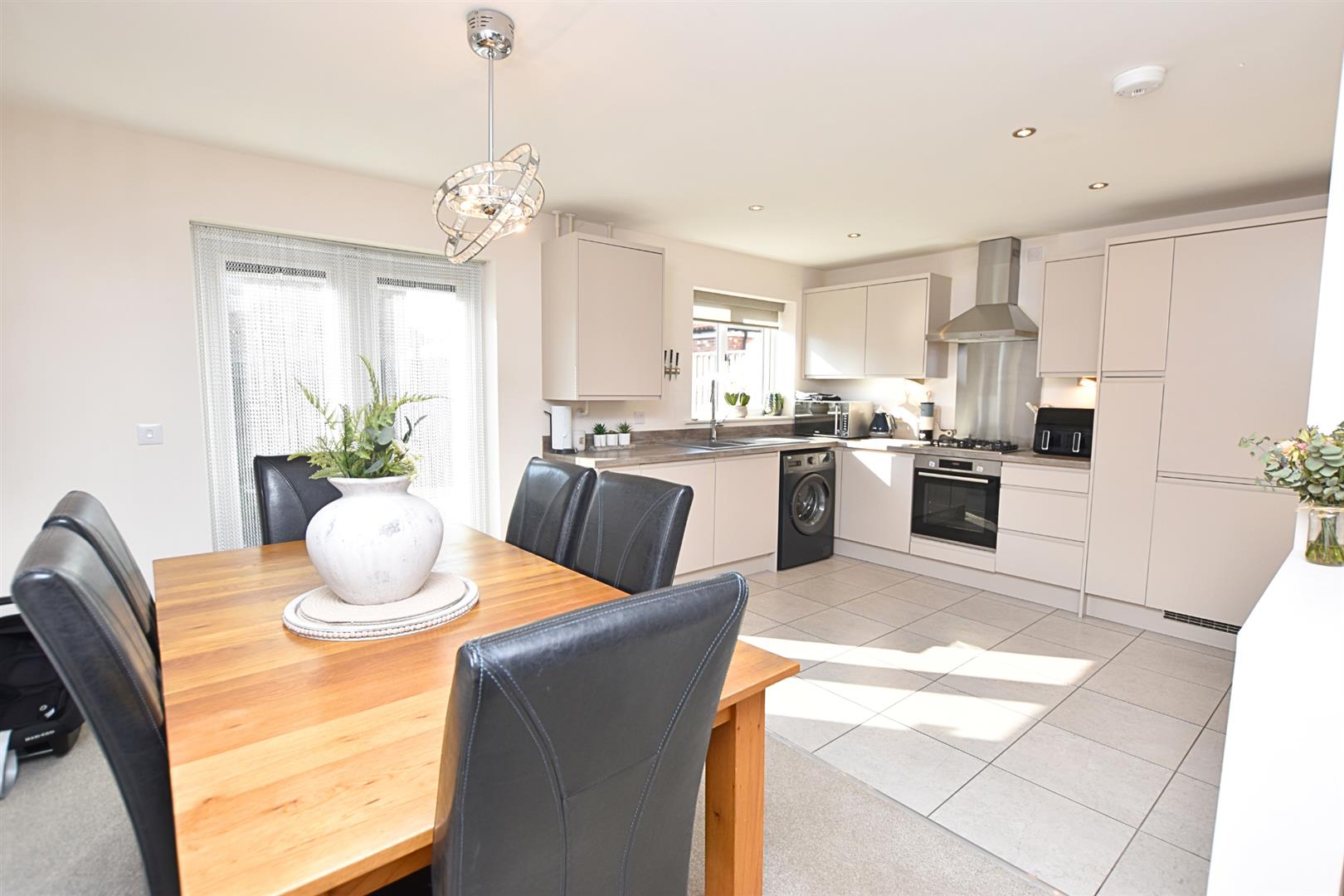 This full width dining kitchen has double glazed french doors to the dining area plus a radiator. The kitchen area is fitted with a range of Kashmir coloured base and wall cupboards including an integrated dishwasher, fridge and freezer together with a build in electric oven, gas hob with an extractor fan above. The contrasting work surfaces are inset with a resin sink unit together with matching upstands. An Ideal wall mounted gas fired boiler is concealed in a matching wall unit. Vinyl flooring.