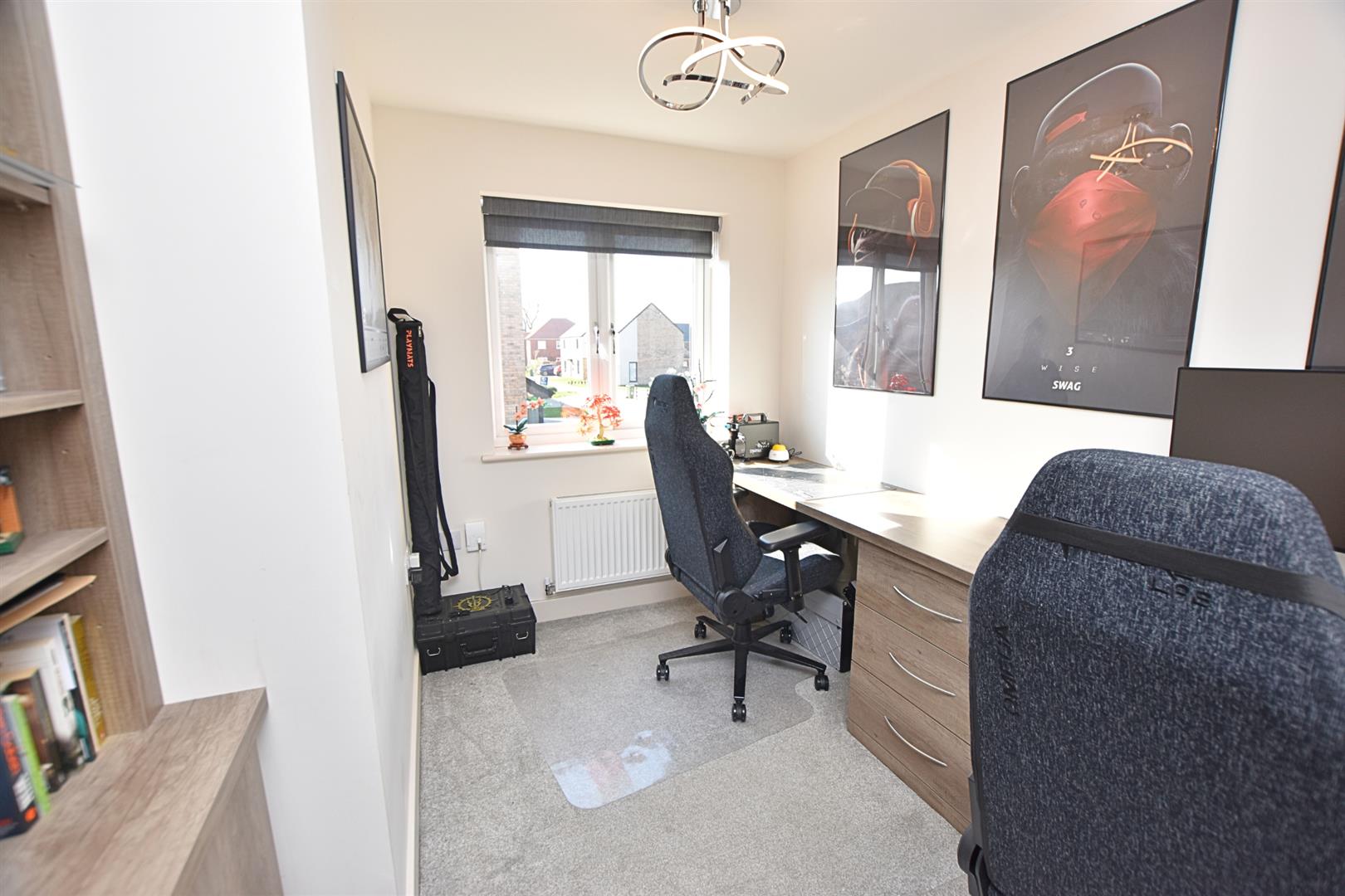 Used by the current owners as a home office and again having fitted furniture by Haagensen’s which includes a book case with cupboards below and a desk area for two people. Double glazed window. Radiator.