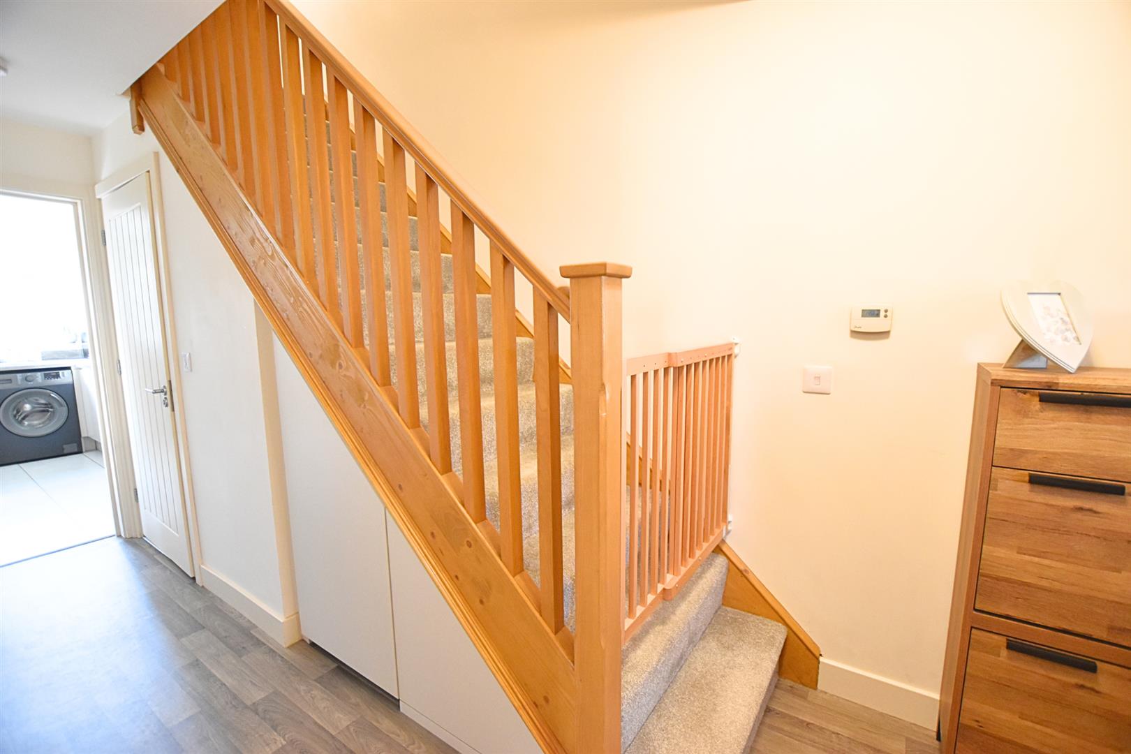Approached through a black composite entrance door, this welcoming main entrance has radiator, vinyl flooring and a oak styled spelled staircase which leads up to the first floor. Useful understairs storage cupboard.