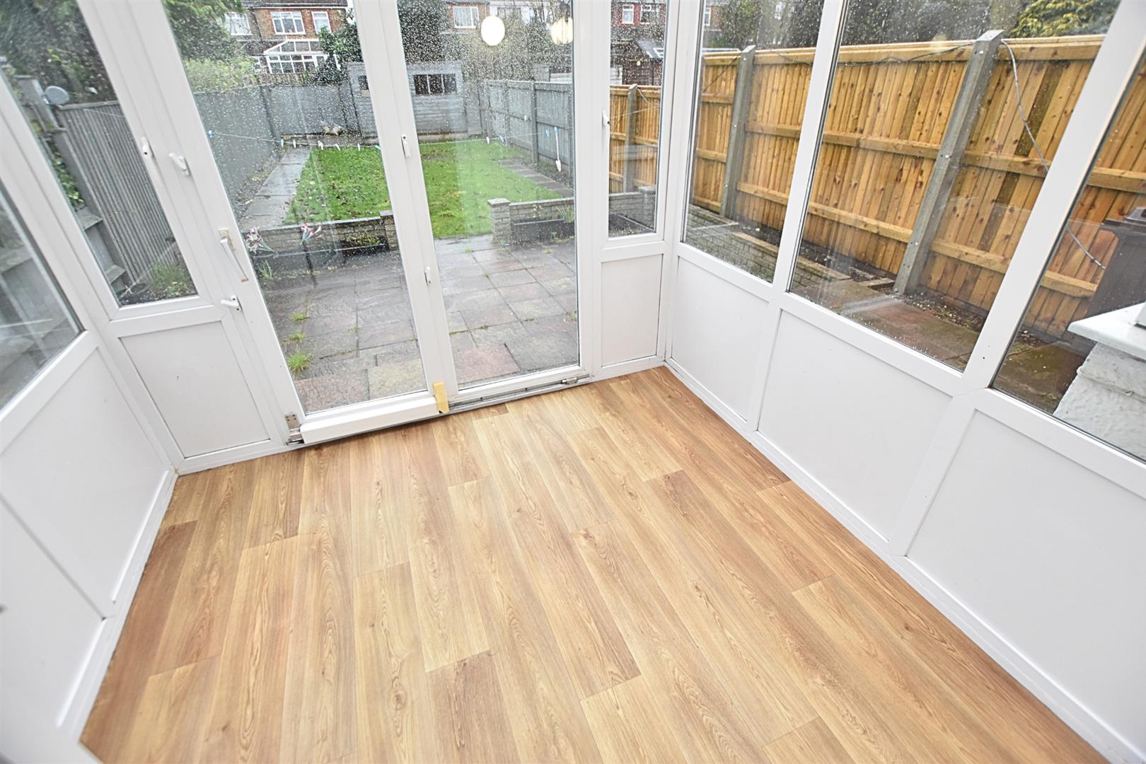 The handy sunroom/utility room has a uPVC sliding door leading to the garden and wood effect vinyl flooring.