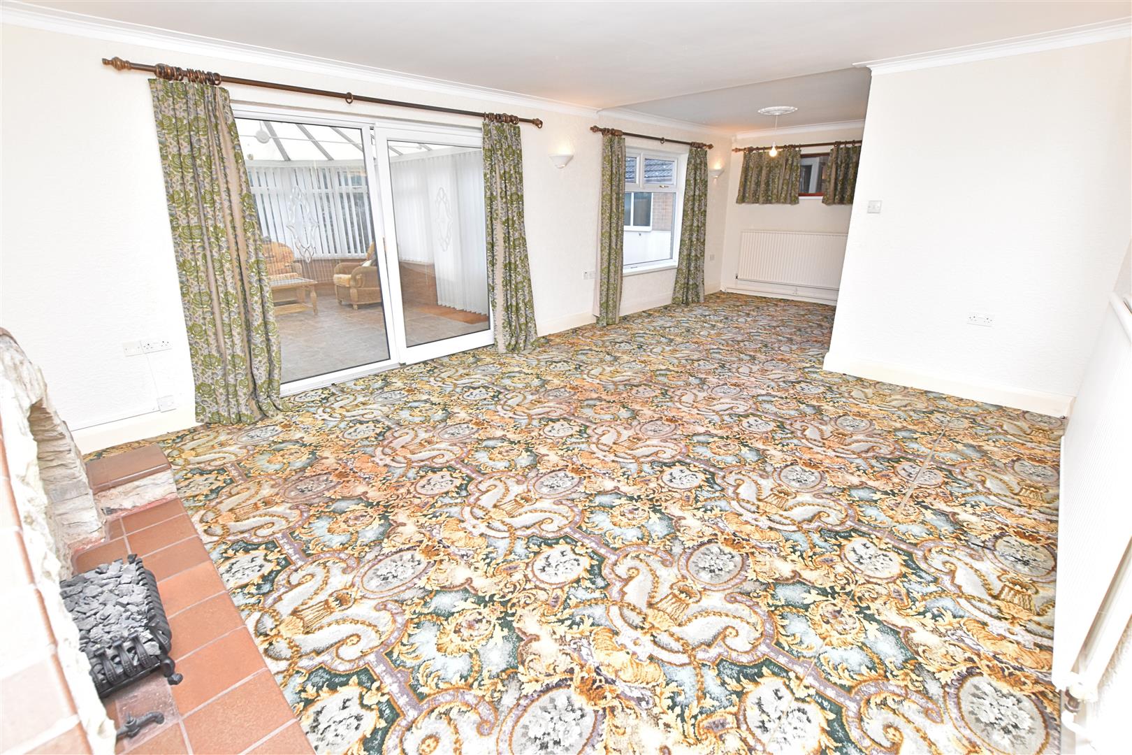 This dual purpose room has a uPVC double glazed window overlooking the garden and patio doors leading to the conservatory. Having ample room for a lounge area and dining area with coving to the ceiling, carpeted flooring, two radiators and feature stone fireplace with walnut plinths, quarry tiled hearth and gas fire. Double doors leading to the reception hall.