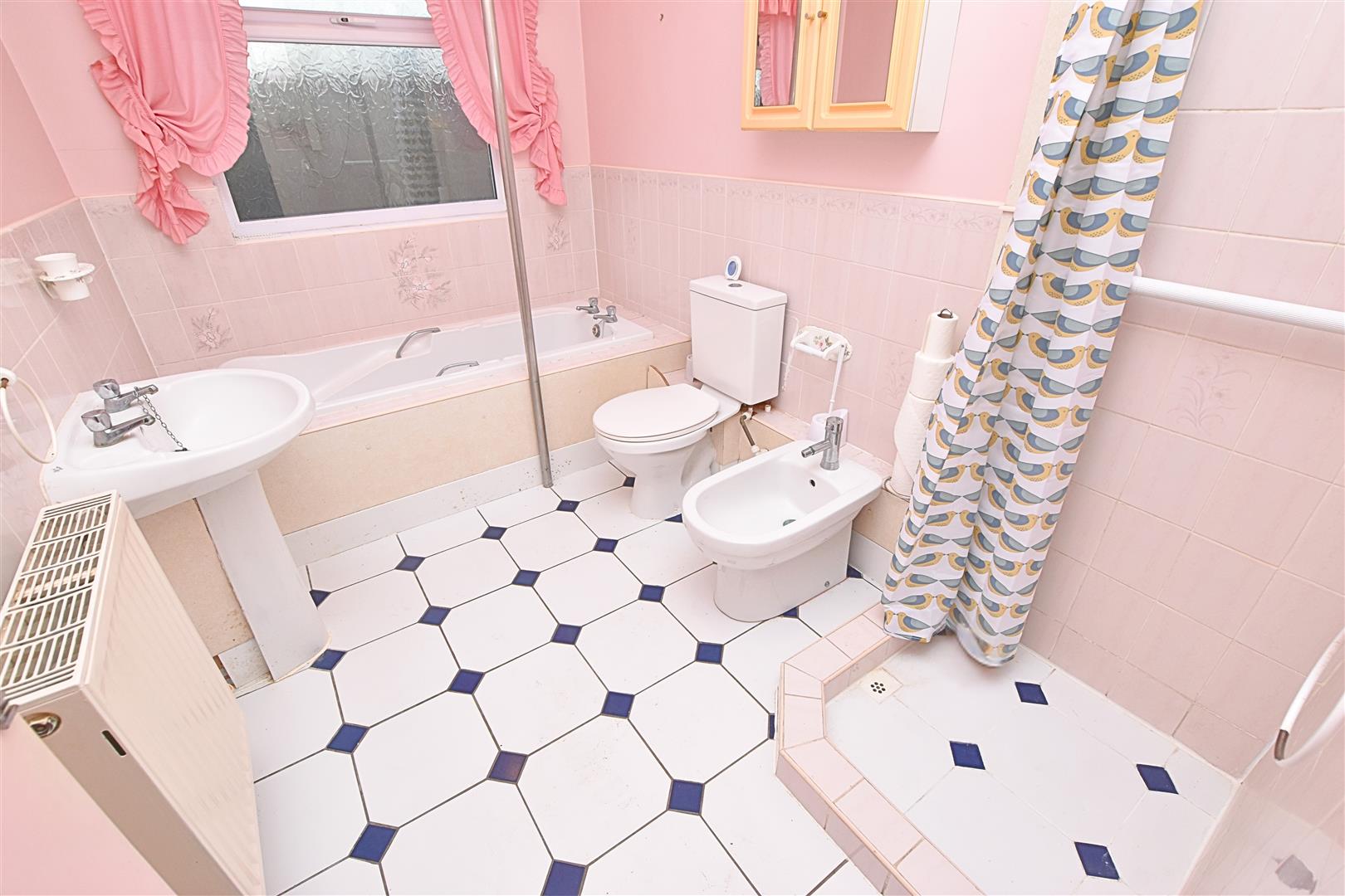 The ground floor bathroom benefits from a white four piece suite comprising of; Bath, shower, pedestal handwash basin, low flush wc and bidet. Finished part tiled walls, tiled flooring, radiator, extractor fan and uPVC double glazed window to the side aspect.