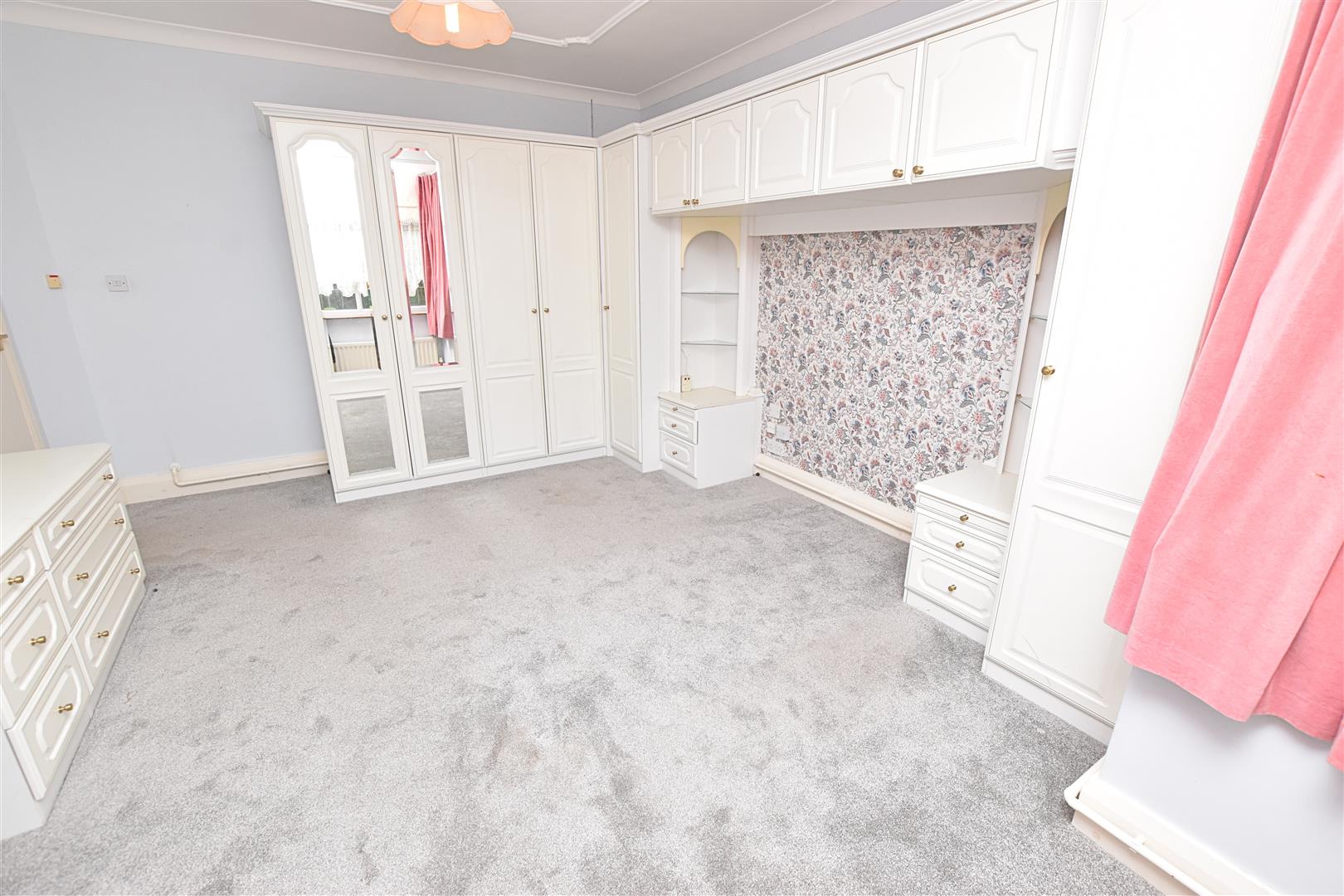 The master bedroom has a uPVC double glazed bay window to the front aspect, coving to the ceiling, carpeted flooring, radiator and a range of built in wardrobes with matching overhead cupboards, bedside draws and dressing table.