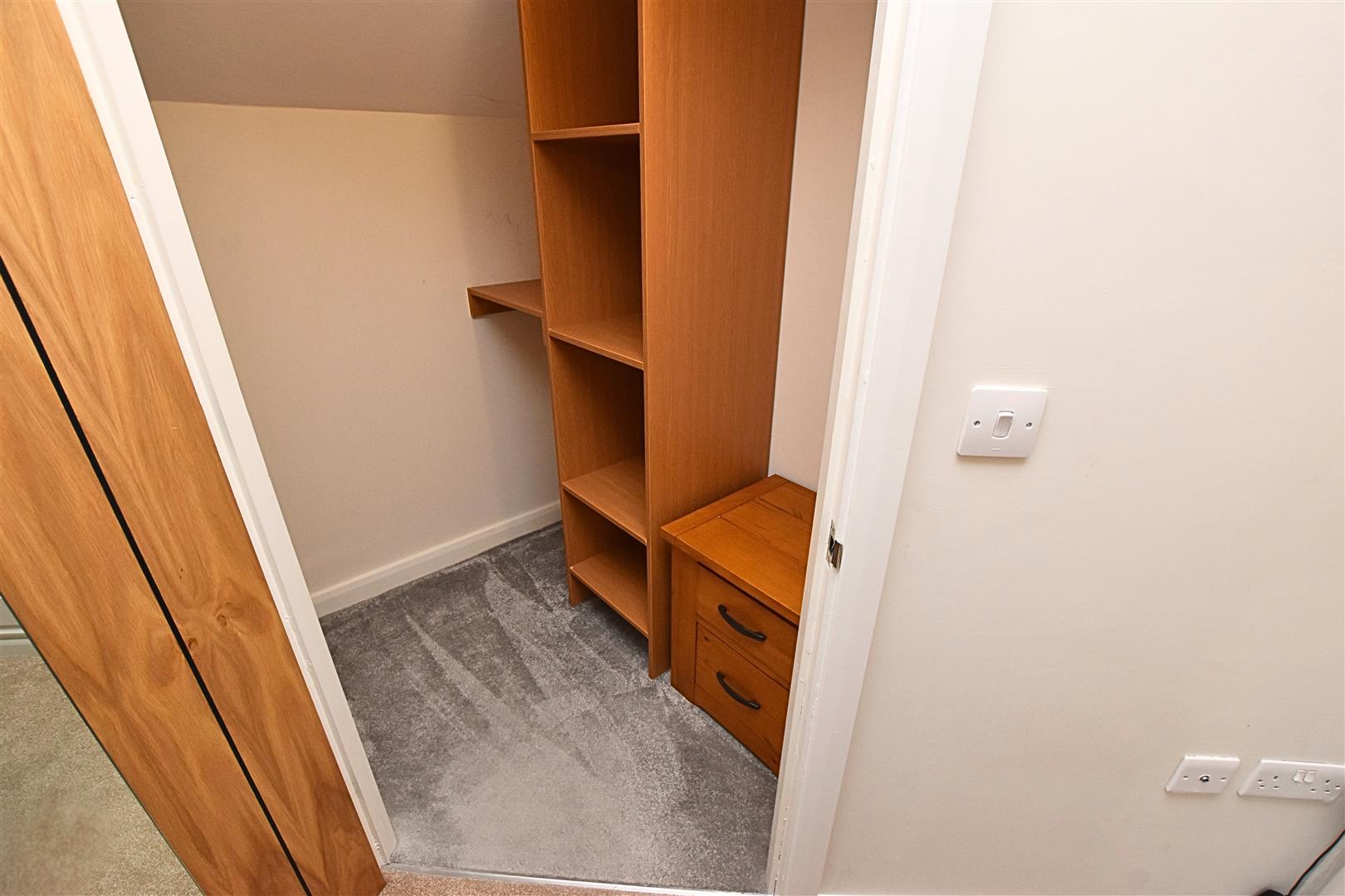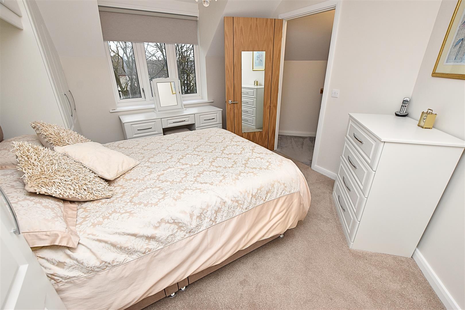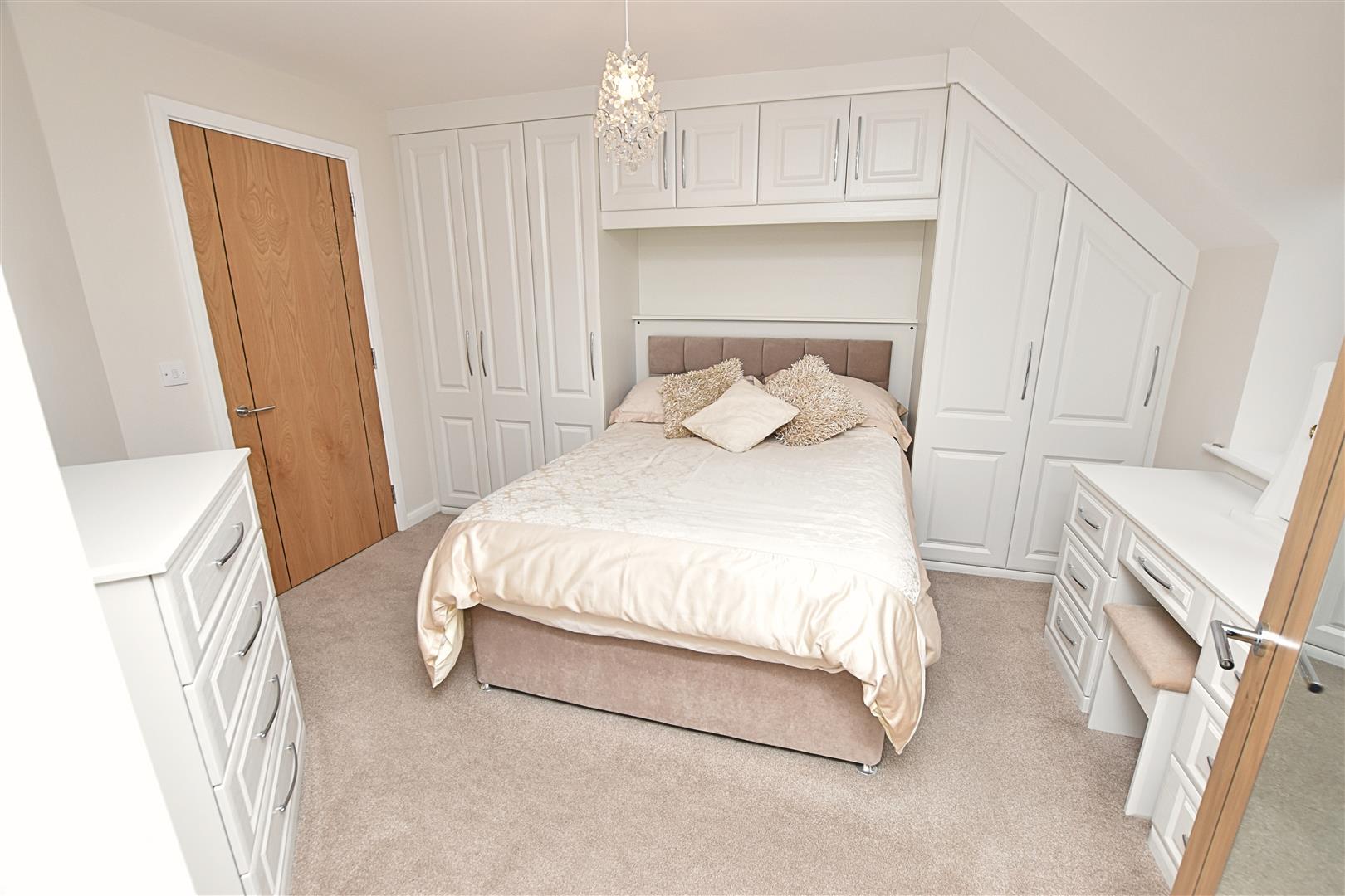 The double bedroom has a uPVC double glazed window to the front aspect, carpeted flooring, electric wall heater and benefits fits from a modern range of Haagensens built in wardrobes with matching overhead cupboards, dressing table and draws and large built in walk in wardrobe.