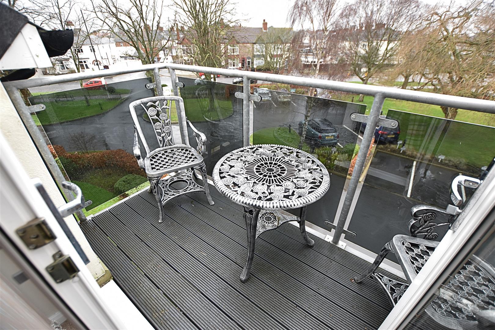 Accessed via the uPVC French door with composite flooring, metal hand rails and glazed security screens.